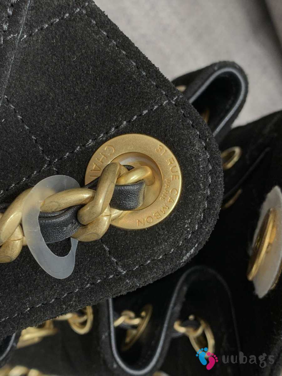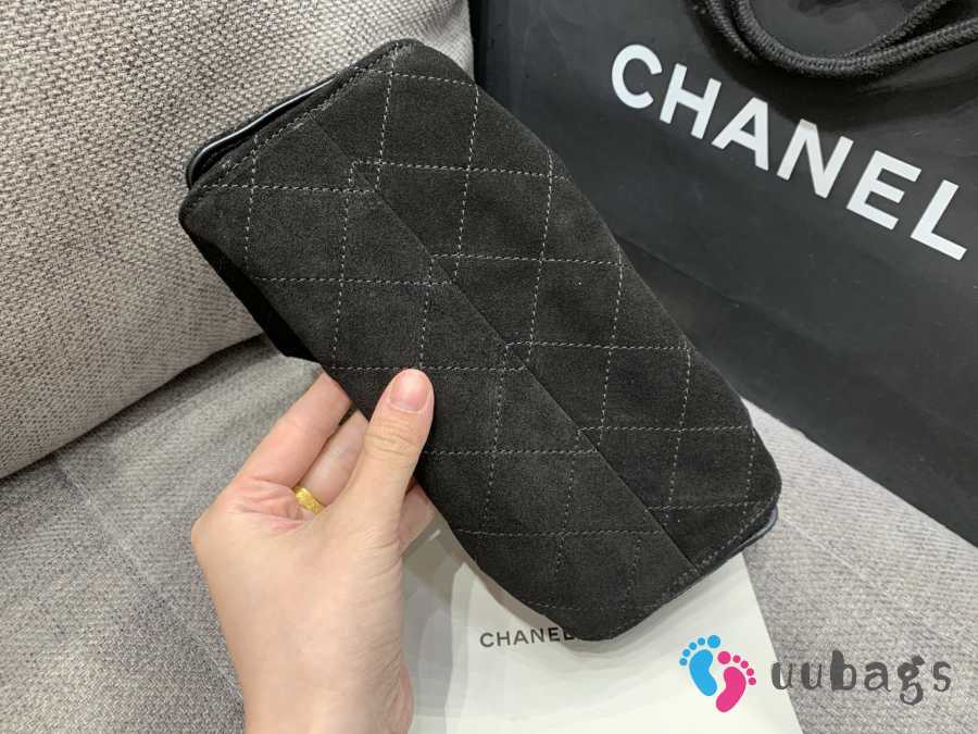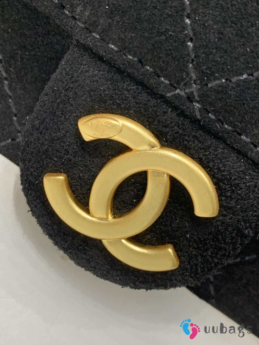 Uubags Chanel 25 Small Handbag Suede Calfskin & Gold Metal Black 22x22x11cm