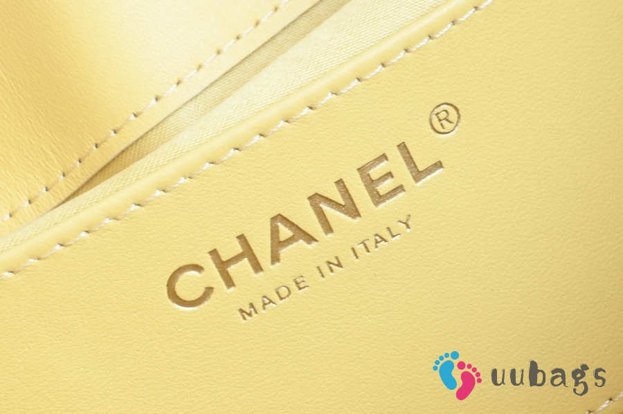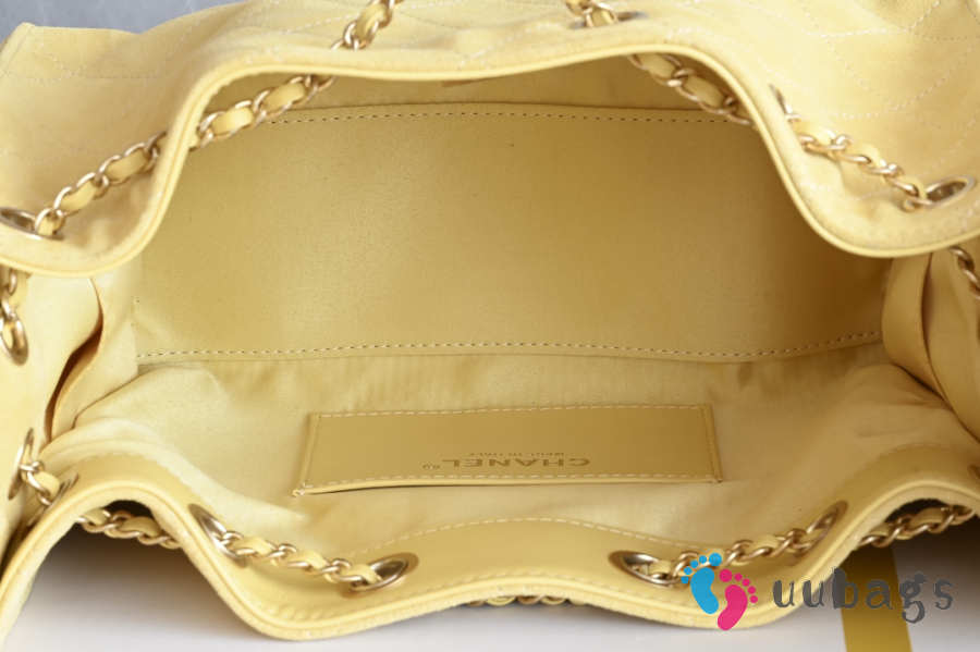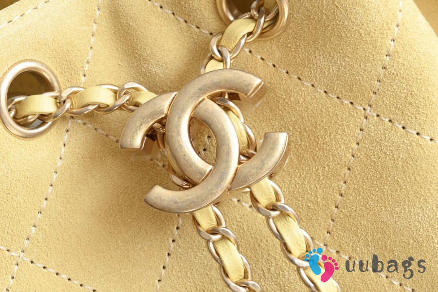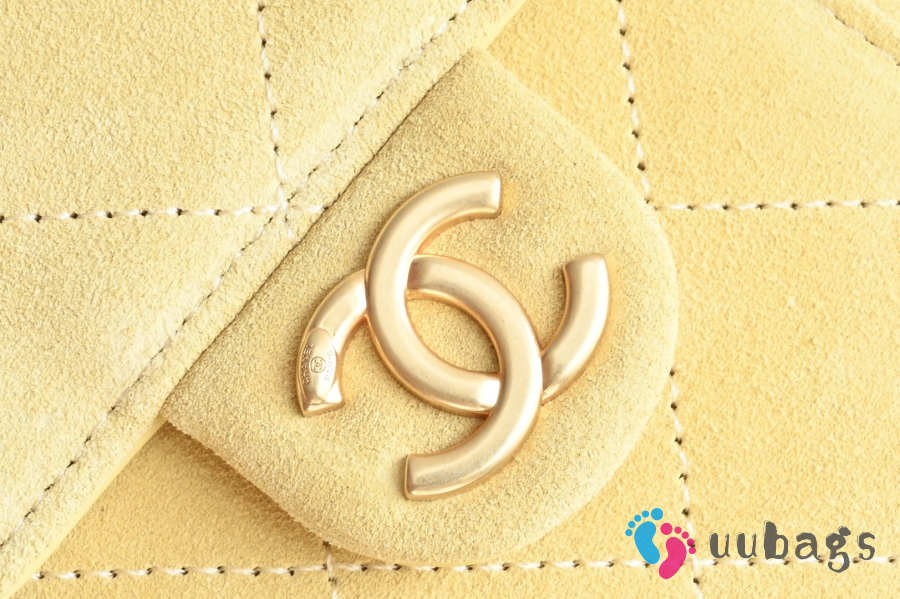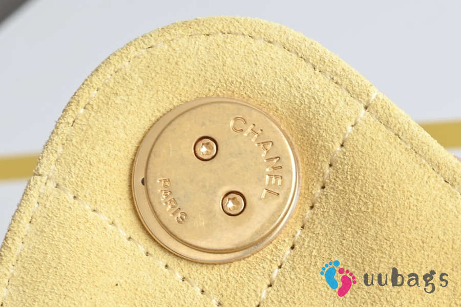 Uubags Chanel 25 Small Handbag Suede Calfskin & Gold Metal Yellow 20x22x12.5cm