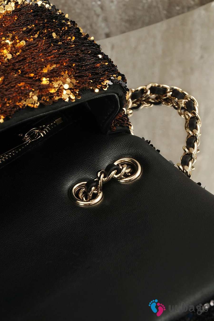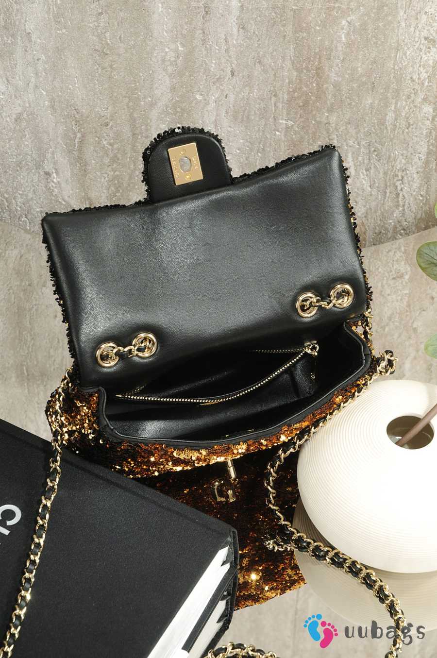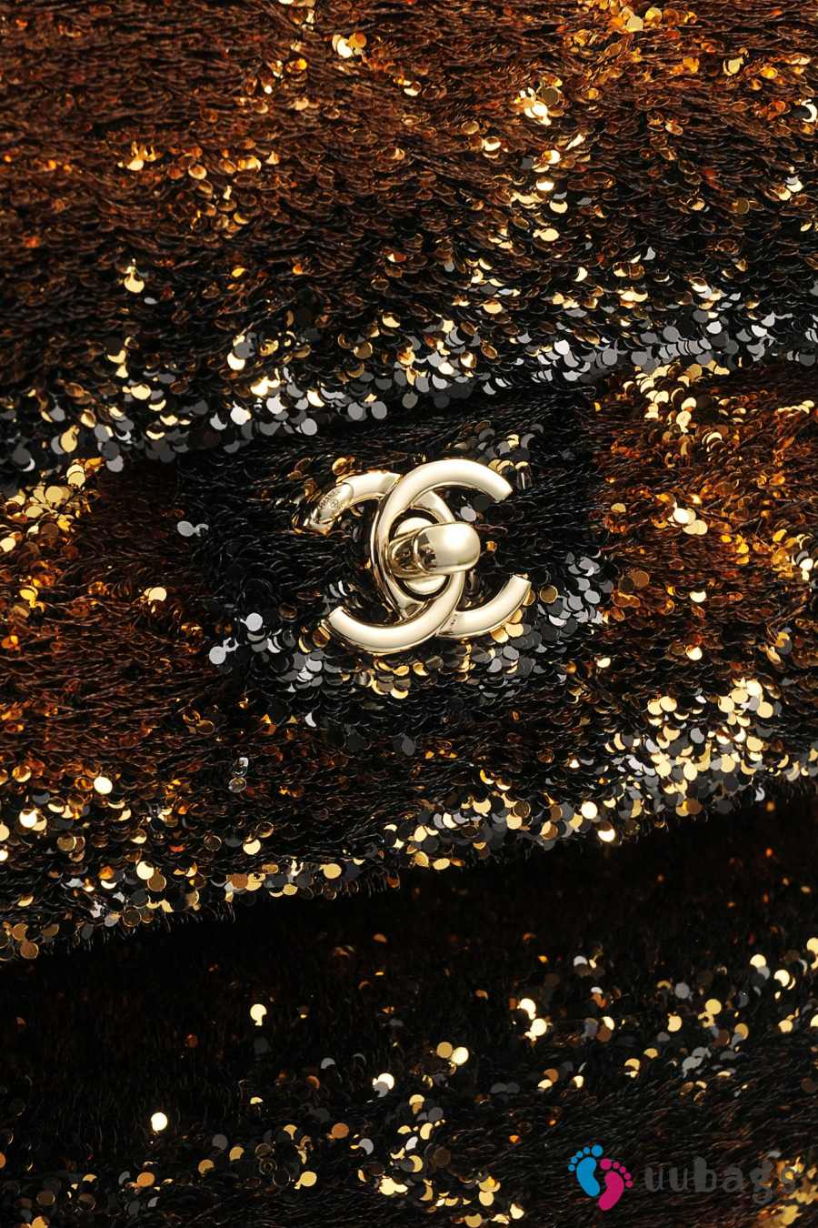 Uubags Chanel 25B Small Sequined CF Flap Bag Brown/Gold With Gold Hardware 21x8x14cm