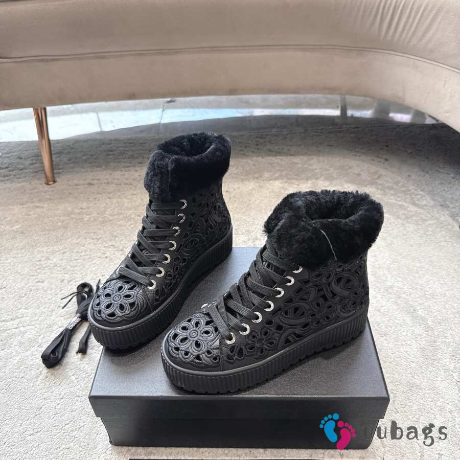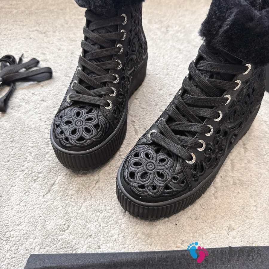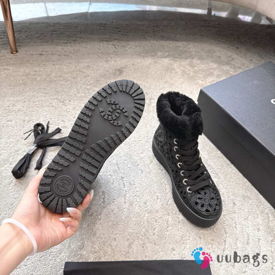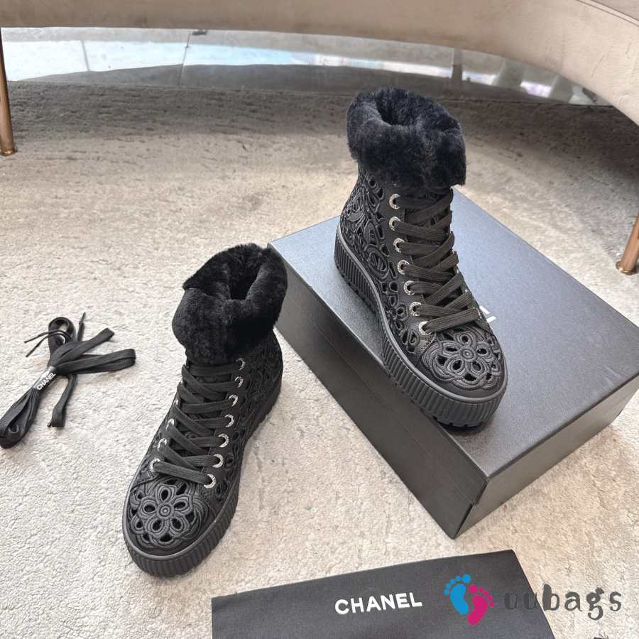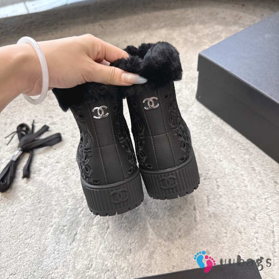 Uubags Chanel Ankle Boots with Embroidered Calfskin and Shearling Black