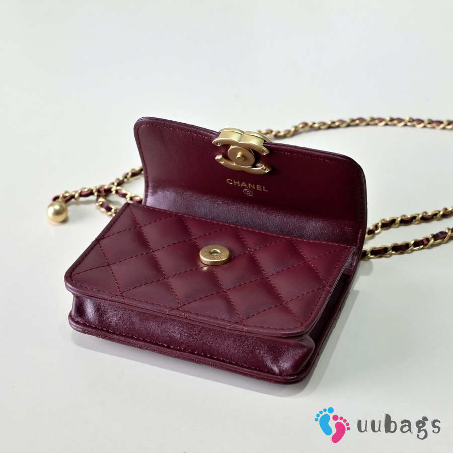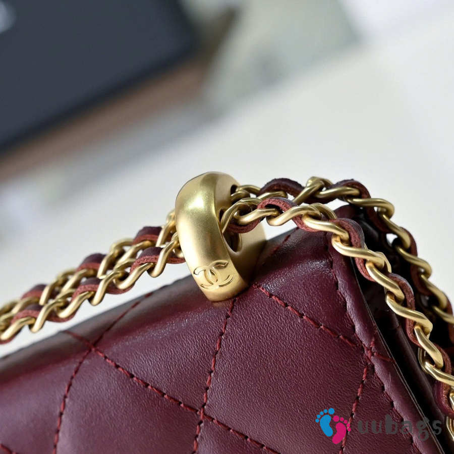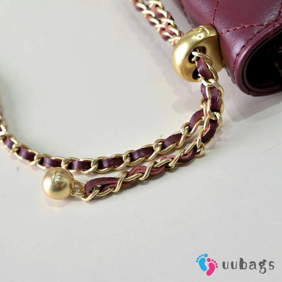 Uubags Chanel AP2290 mini bag in burgundy with gold hardware 12.5x9.5x3.5cm