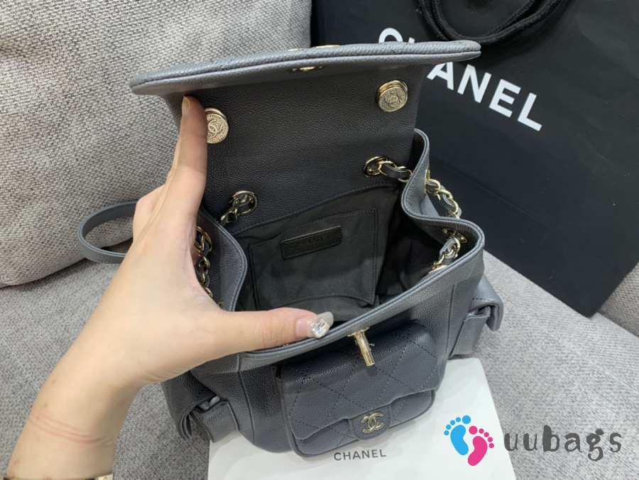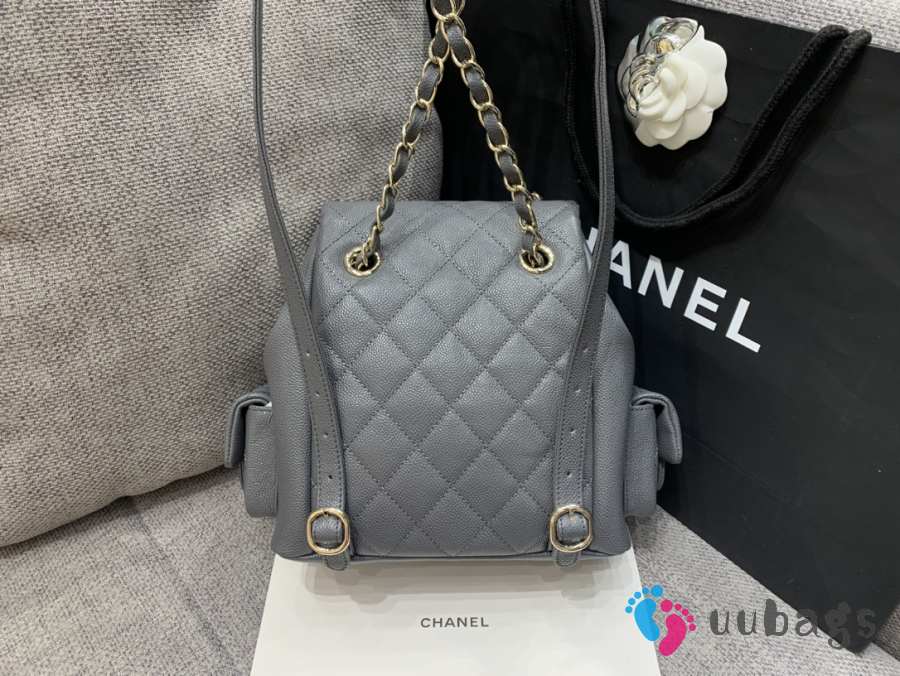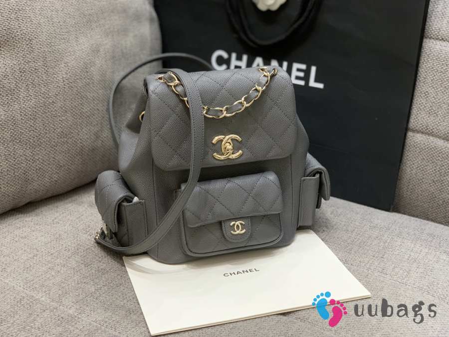 Uubags Chanel Backpack Grained Shiny Calfskin & Gold-Tone Metal Coral Grey 21.5x19.5x12cm