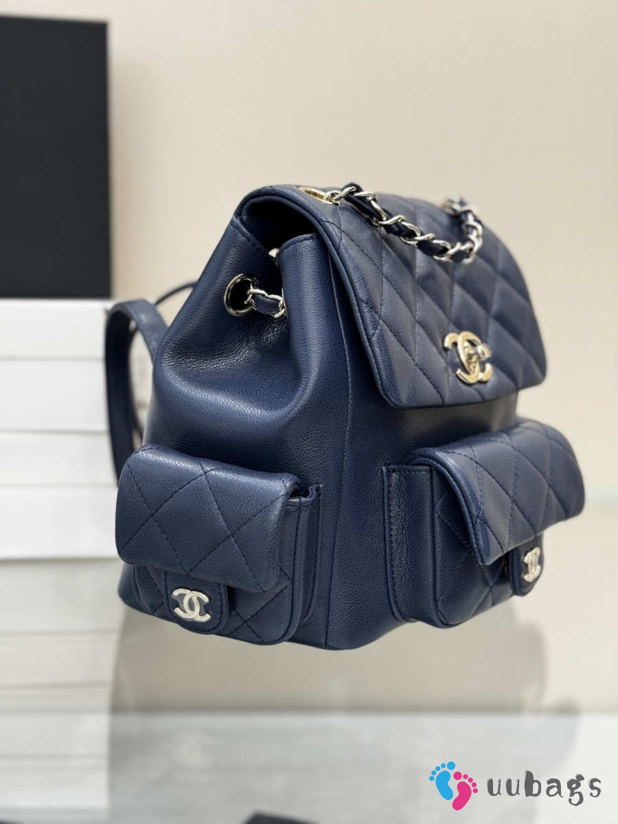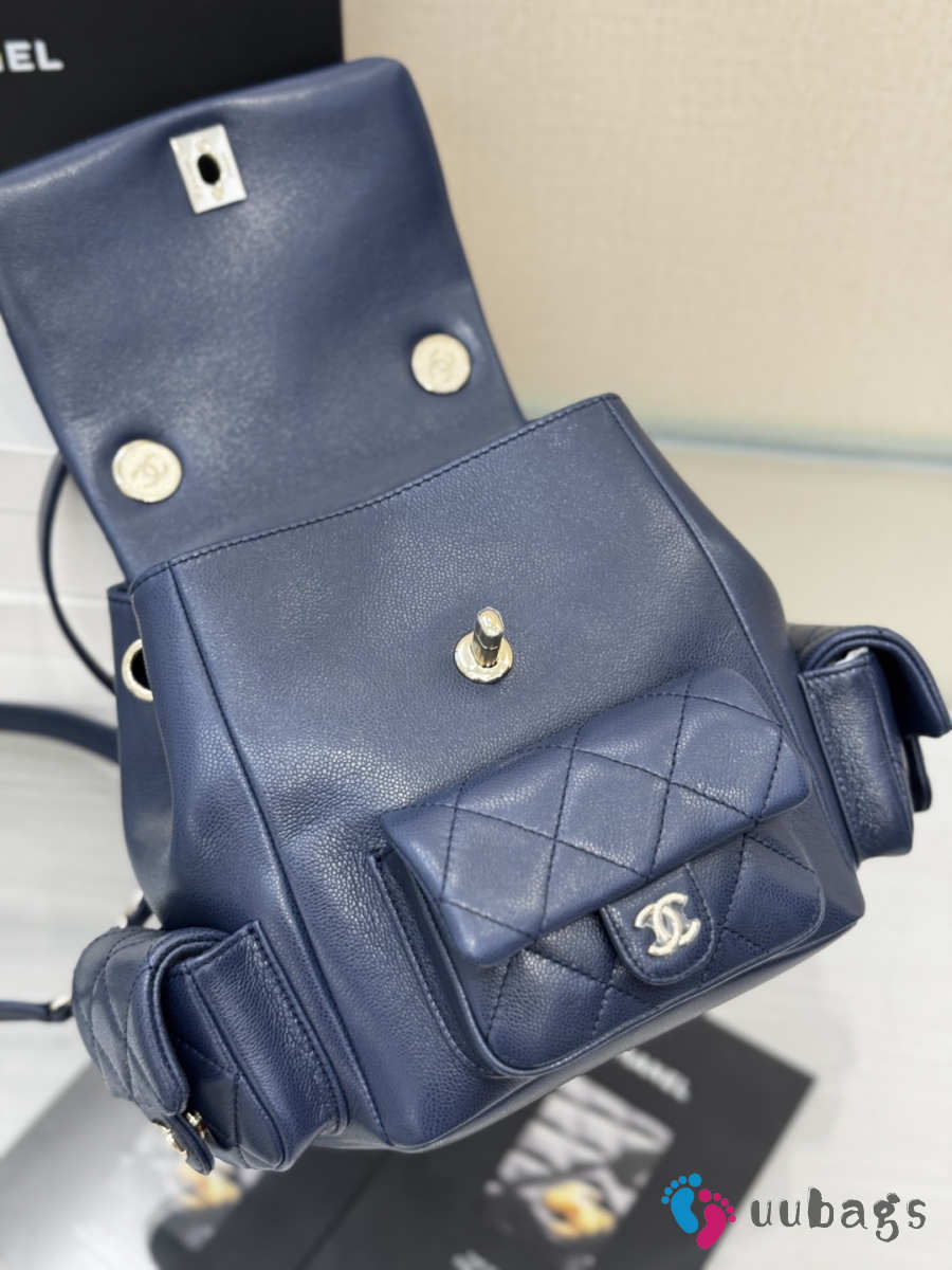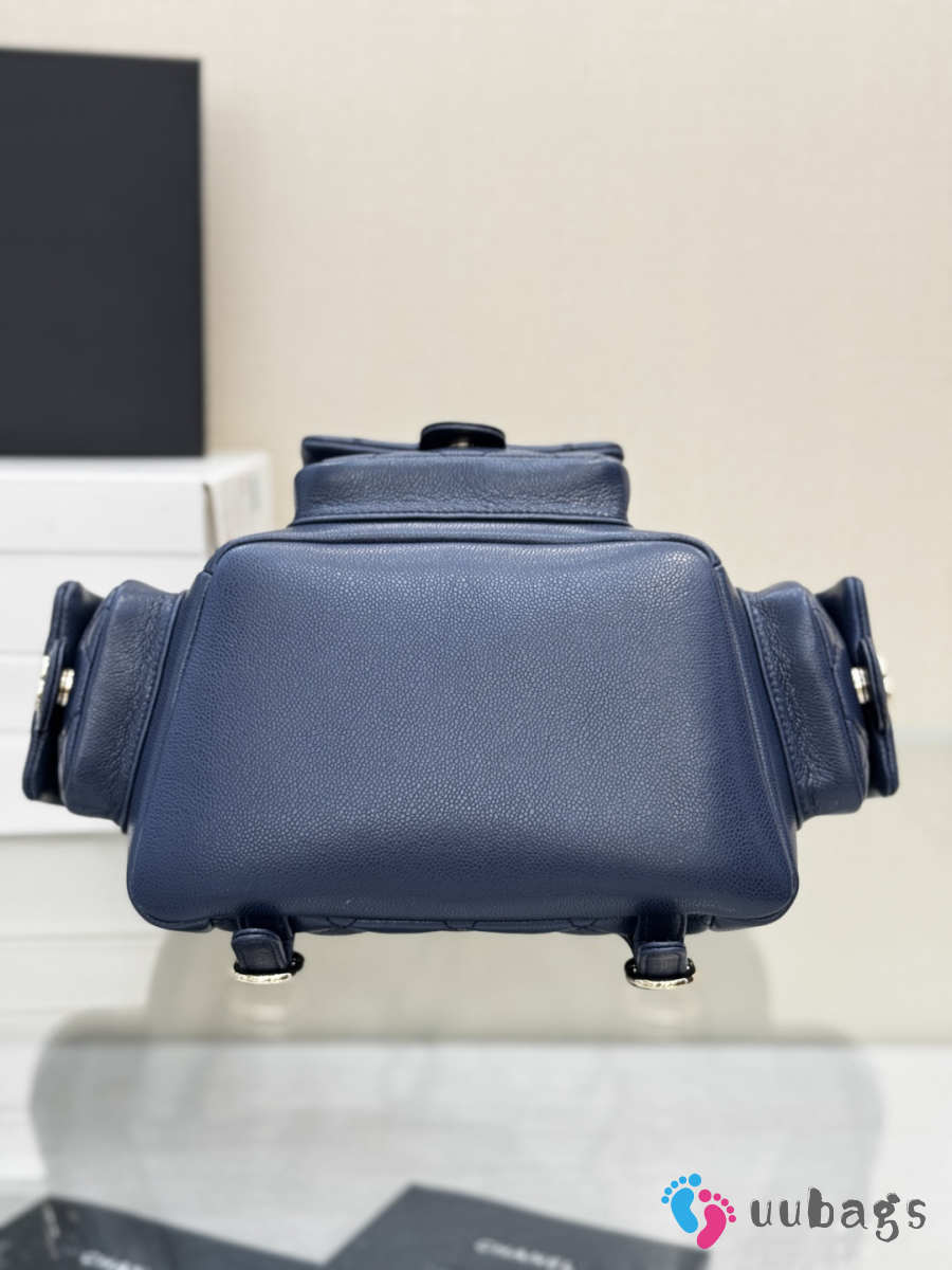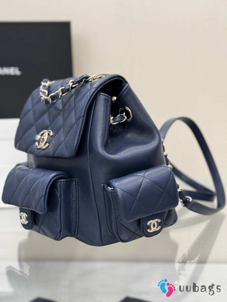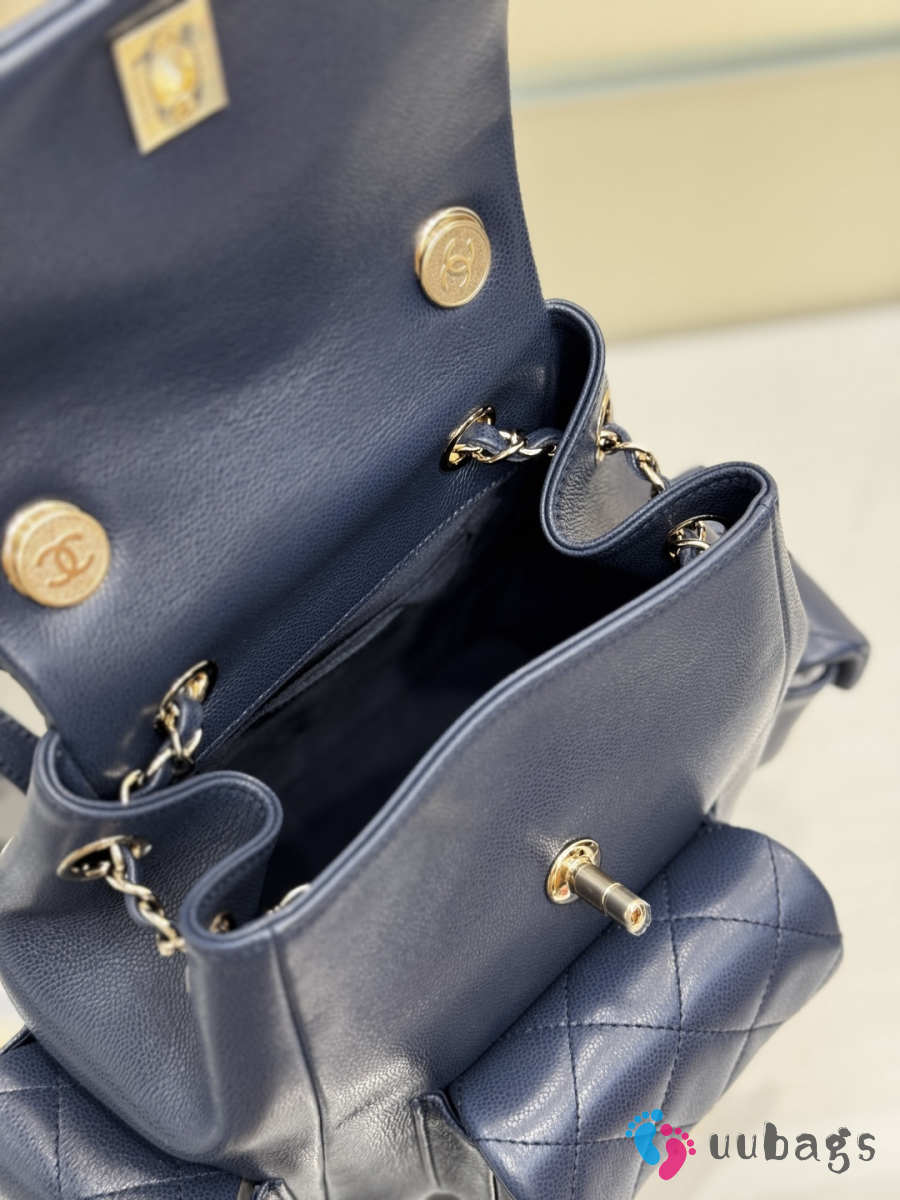 Uubags Chanel Backpack Grained Shiny Calfskin & Gold-Tone Metal Coral Navy Blue 21.5x19.5x12cm