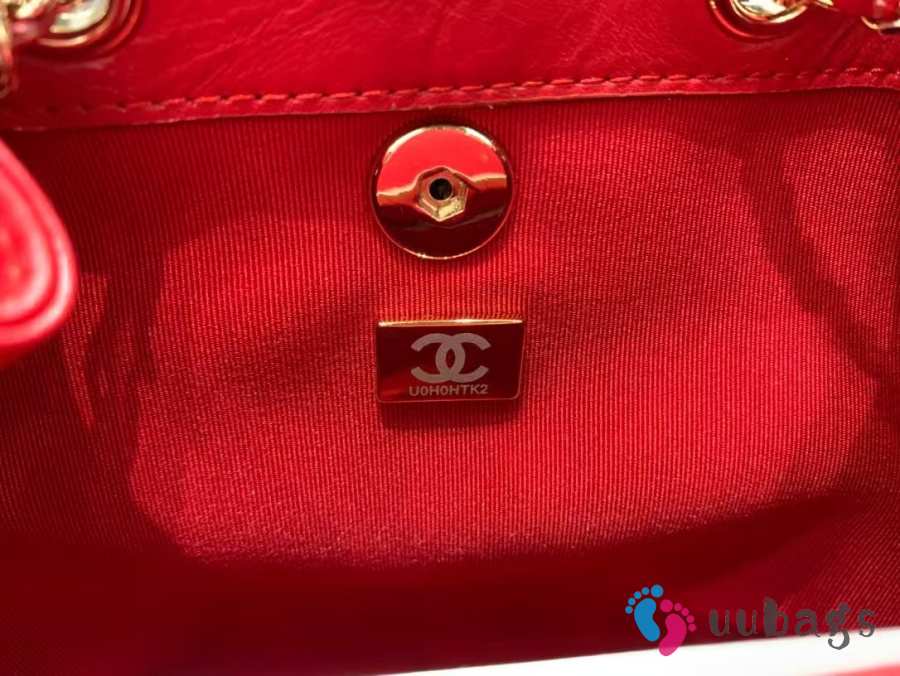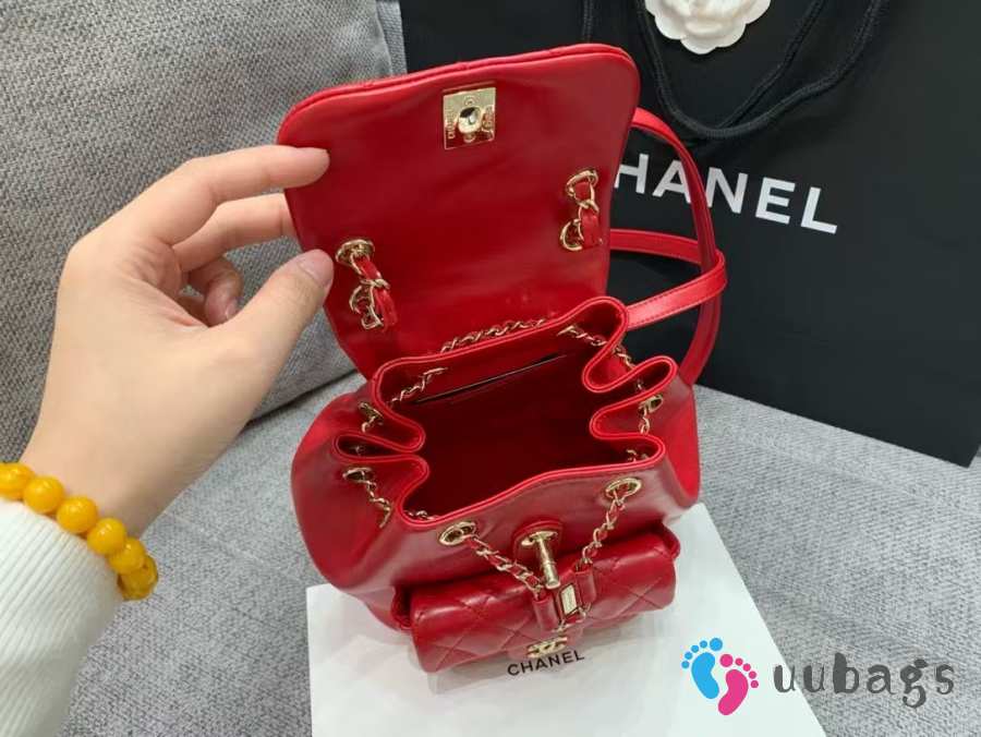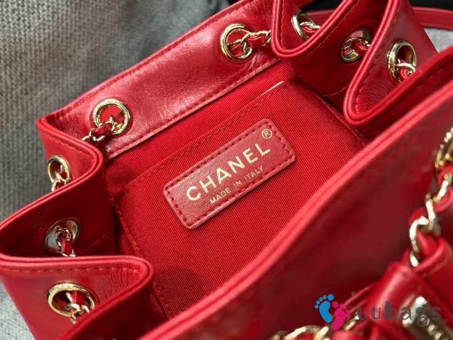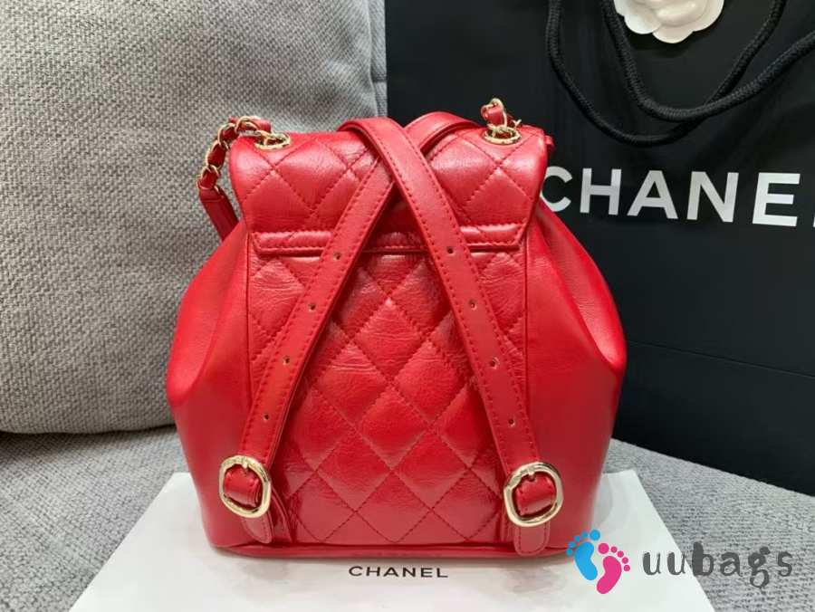 Uubags Chanel Backpack Grained Shiny Calfskin & Gold-Tone Metal Red 18x19x12cm