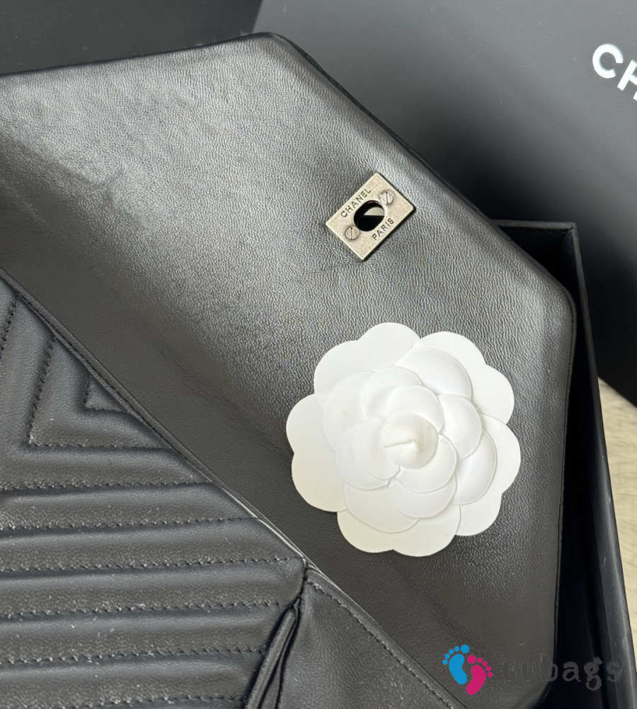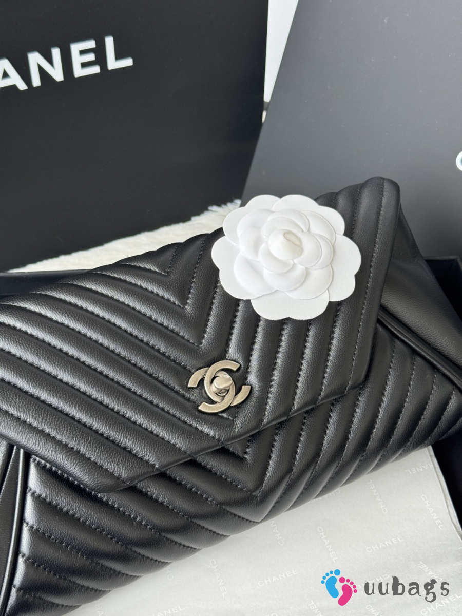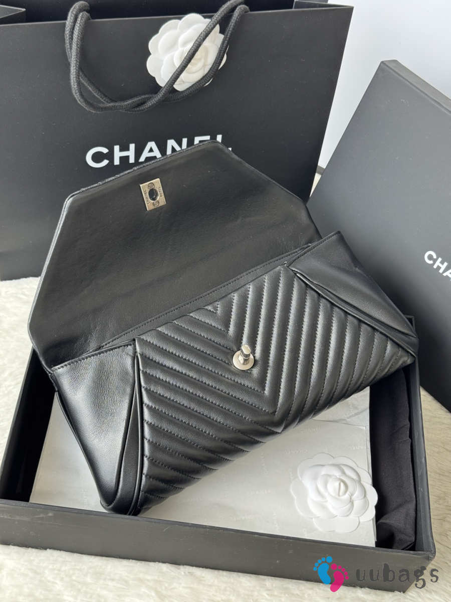 Uubags Chanel Black Chevron Lambskin Fold Up Again Clutch With Silver Hardware 29x14.5cm
