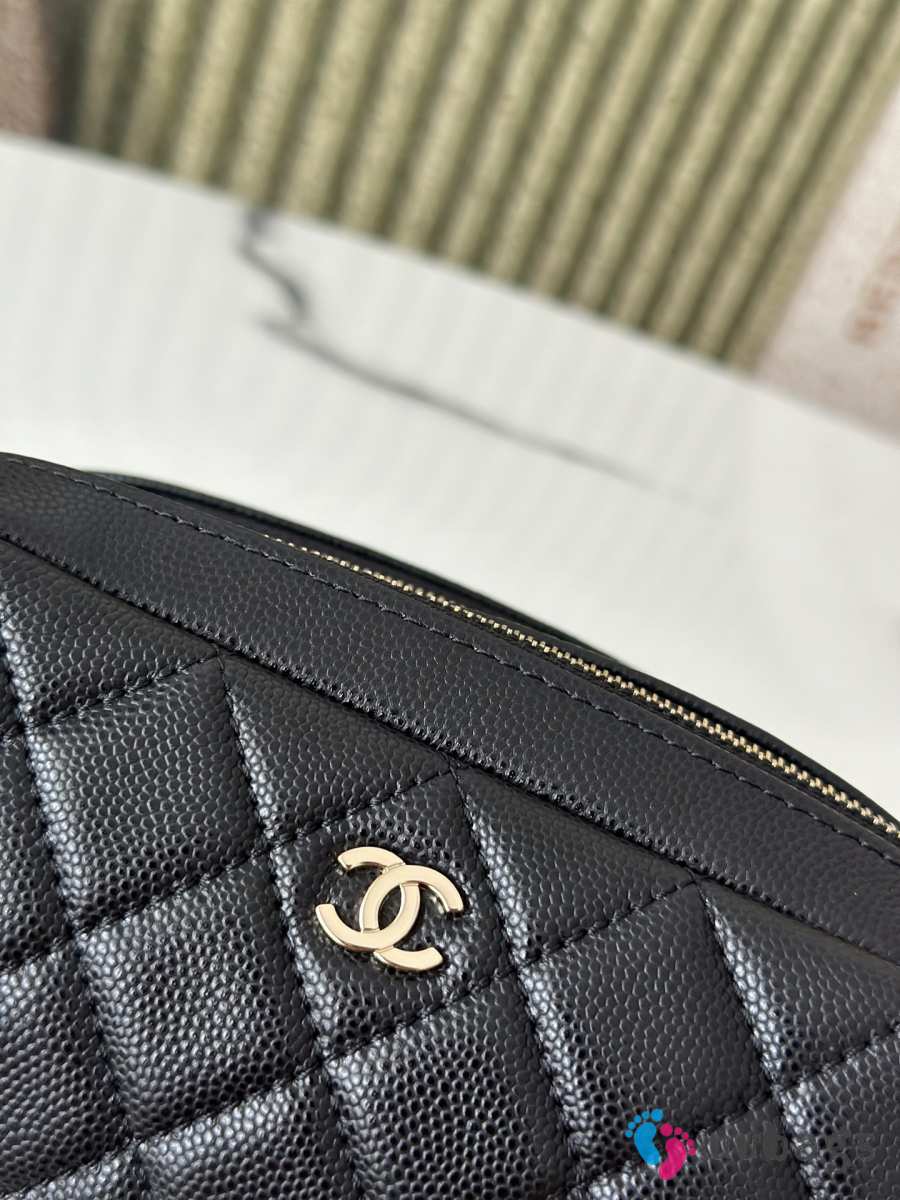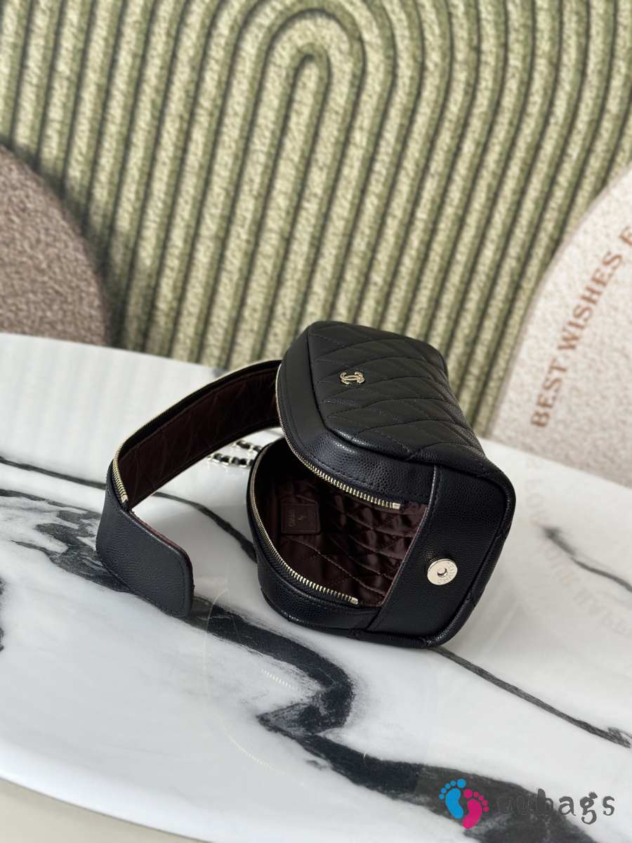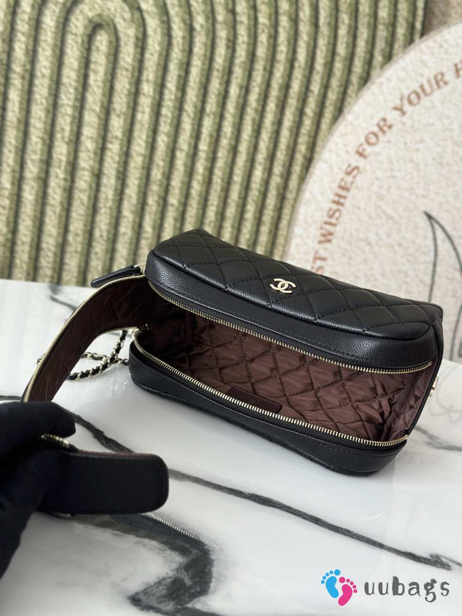 Uubags Chanel Black Cosmetic Bag With Caviar Leather 18x9x9cm