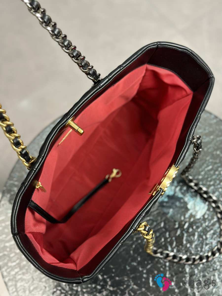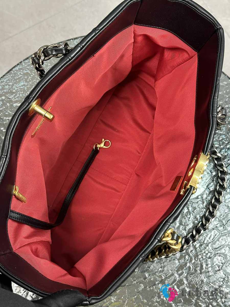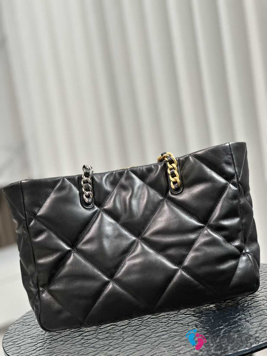 Uubags Chanel Black Quilted Leather Shopping Tote Bag Lambskin Leather 24x41x10cm