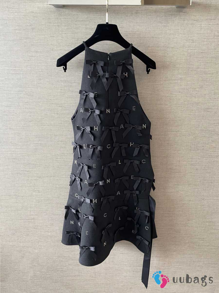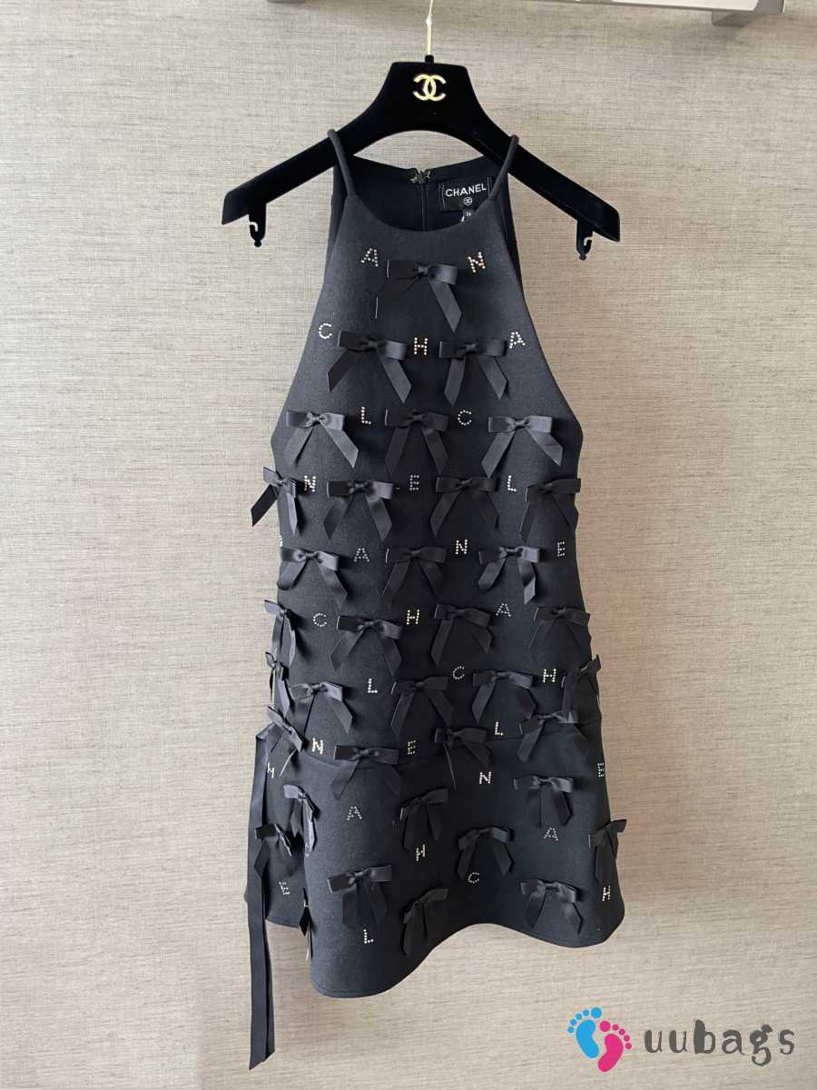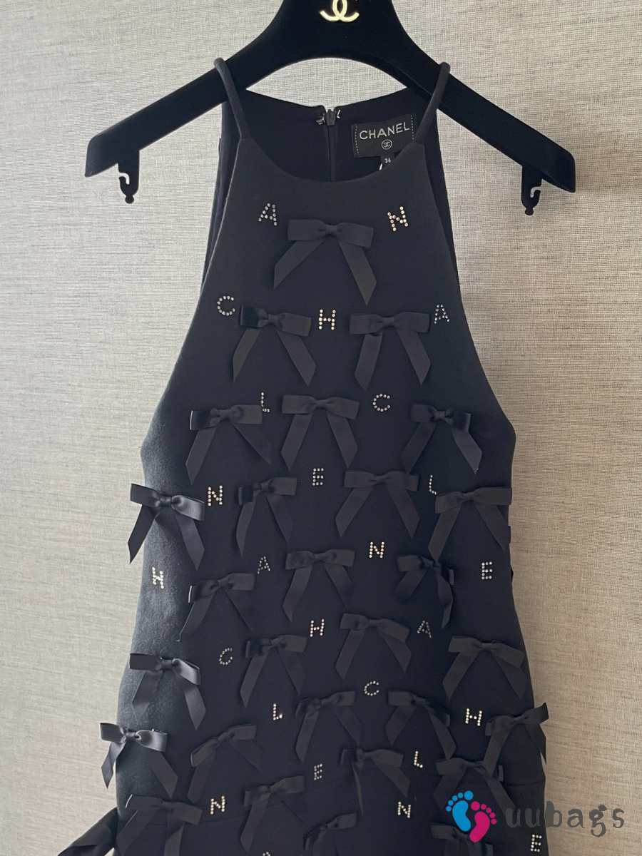 Uubags Chanel Black Satin Bow Appliqué Dress