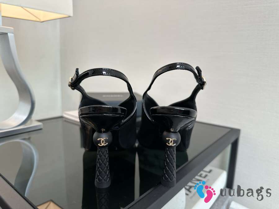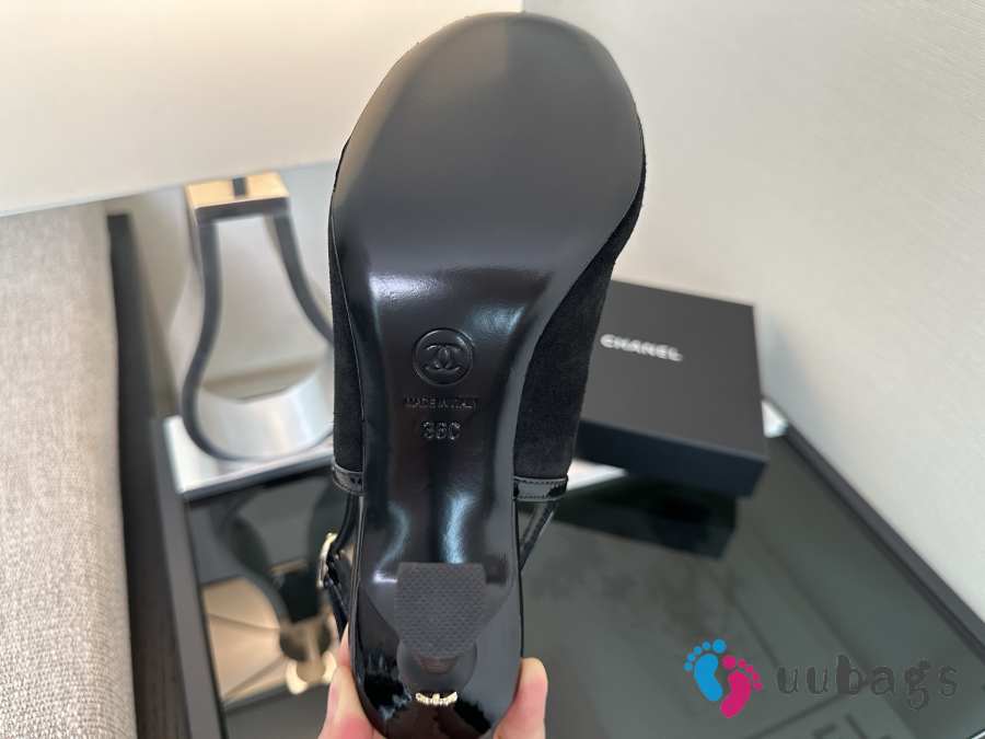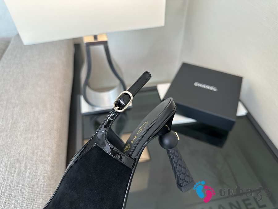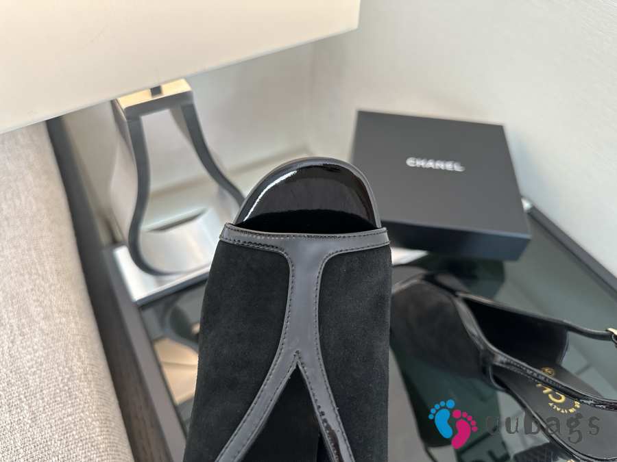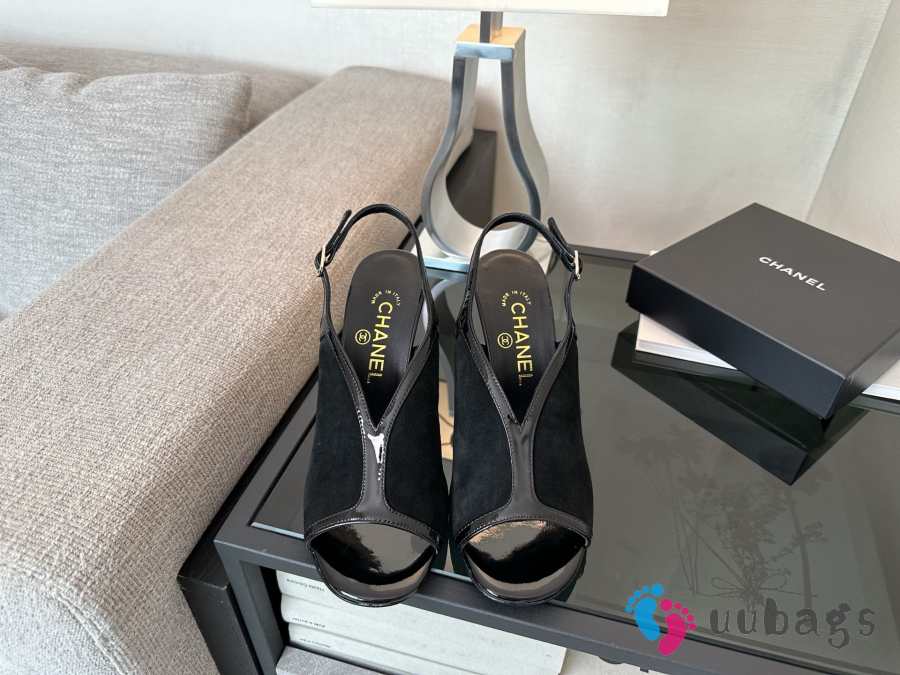 Uubags Chanel Black Suede Slingback Wedge Sandals 9.5cm