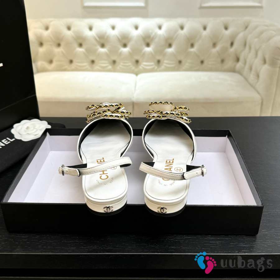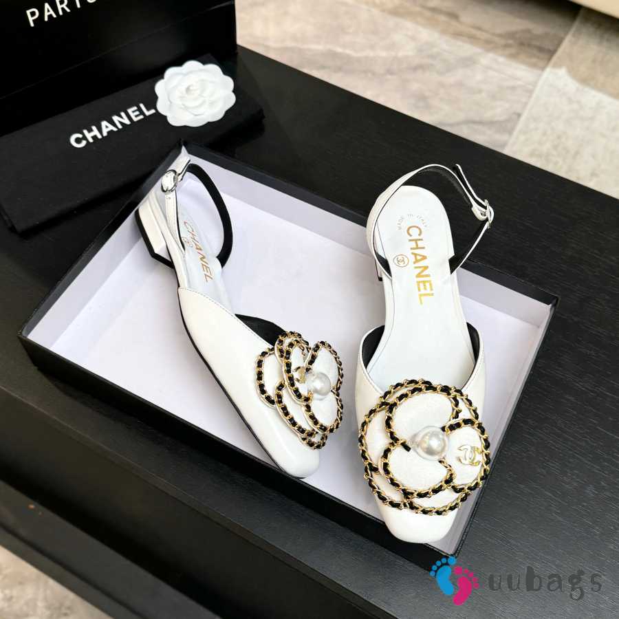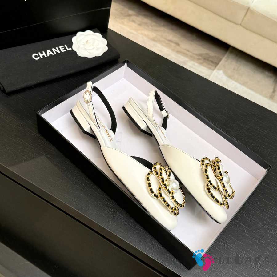 Uubags Chanel Camellia Slingback Flats Cream