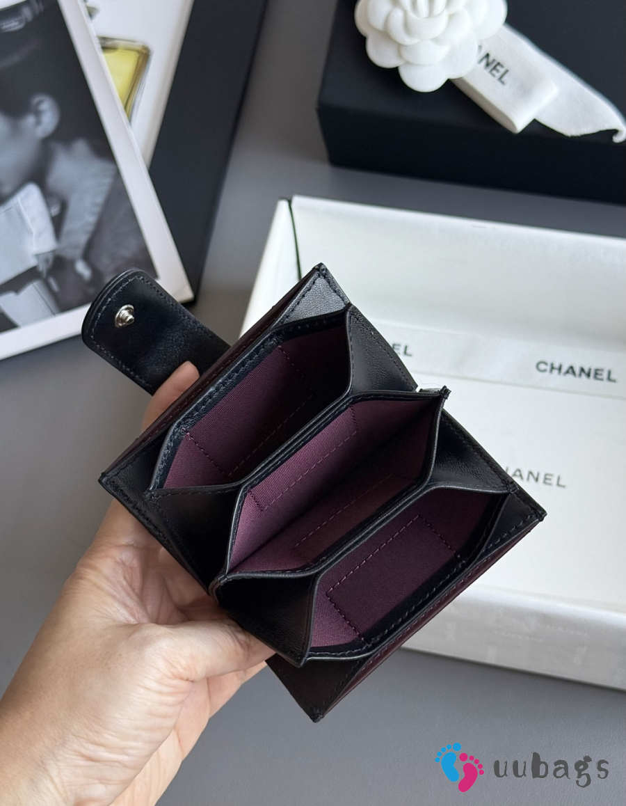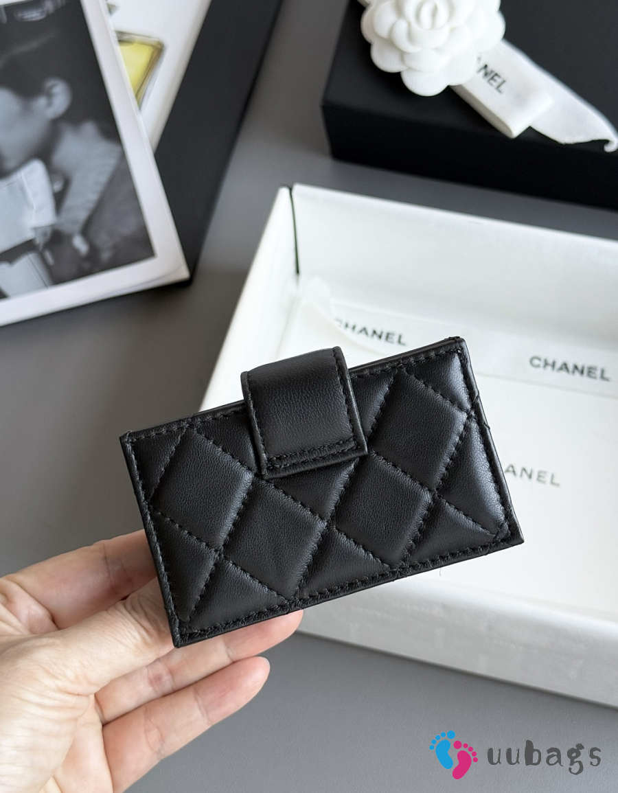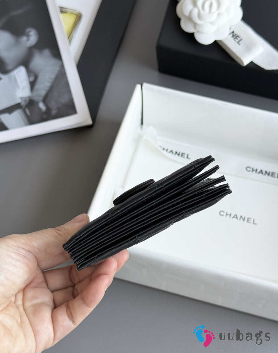 Uubags Chanel card holder in black caviar leather with silver hardware 10.4x7x2cm