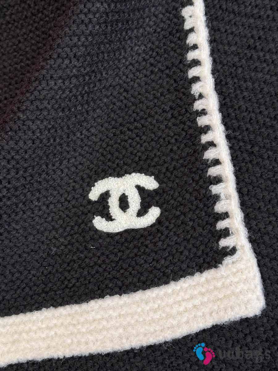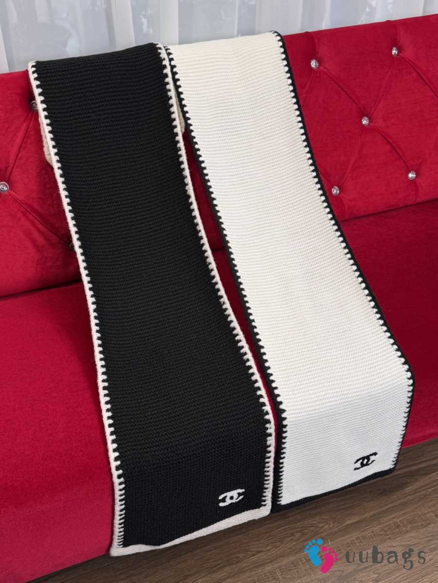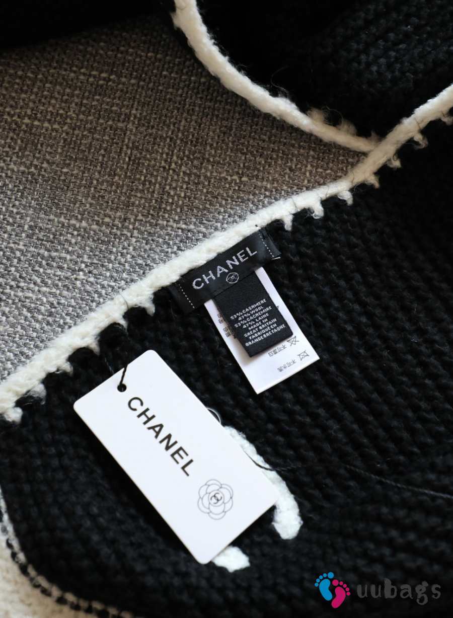 Uubags Chanel Cashmere Blend Knit CC Scarf Black & White