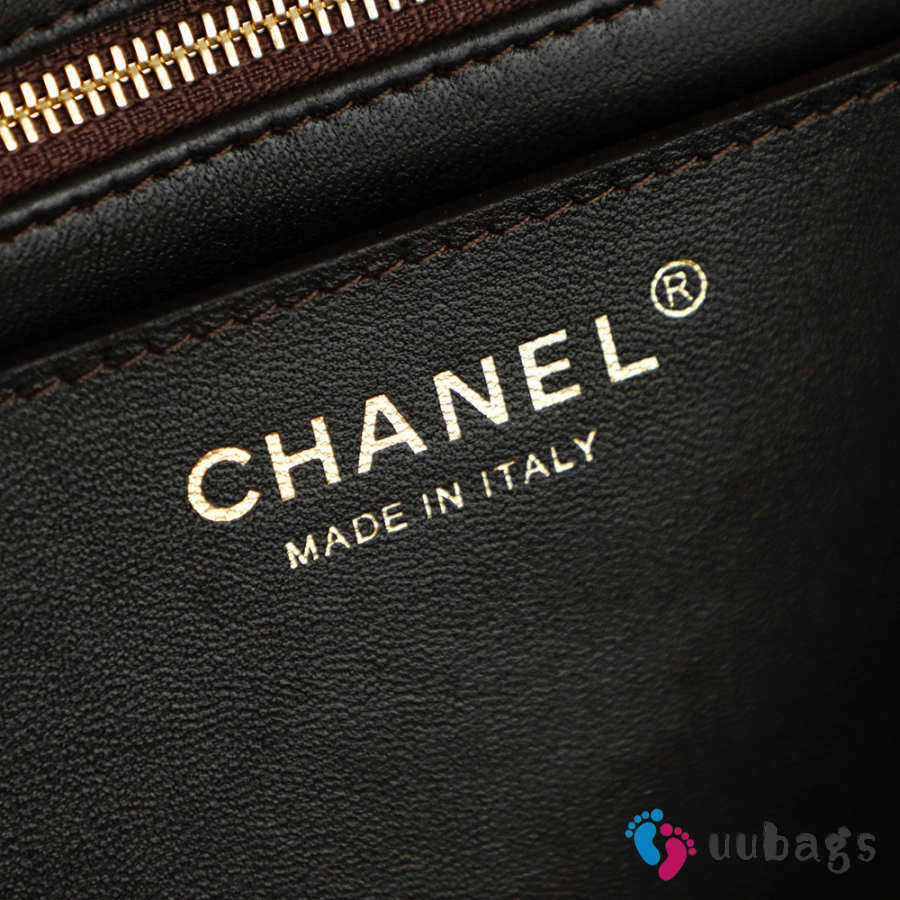 Uubags Chanel small flap-top bag glossy calfskin with grain effect & gold-plated metal in black 15x22x7cm