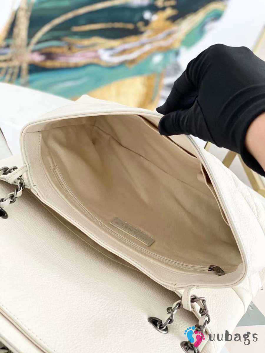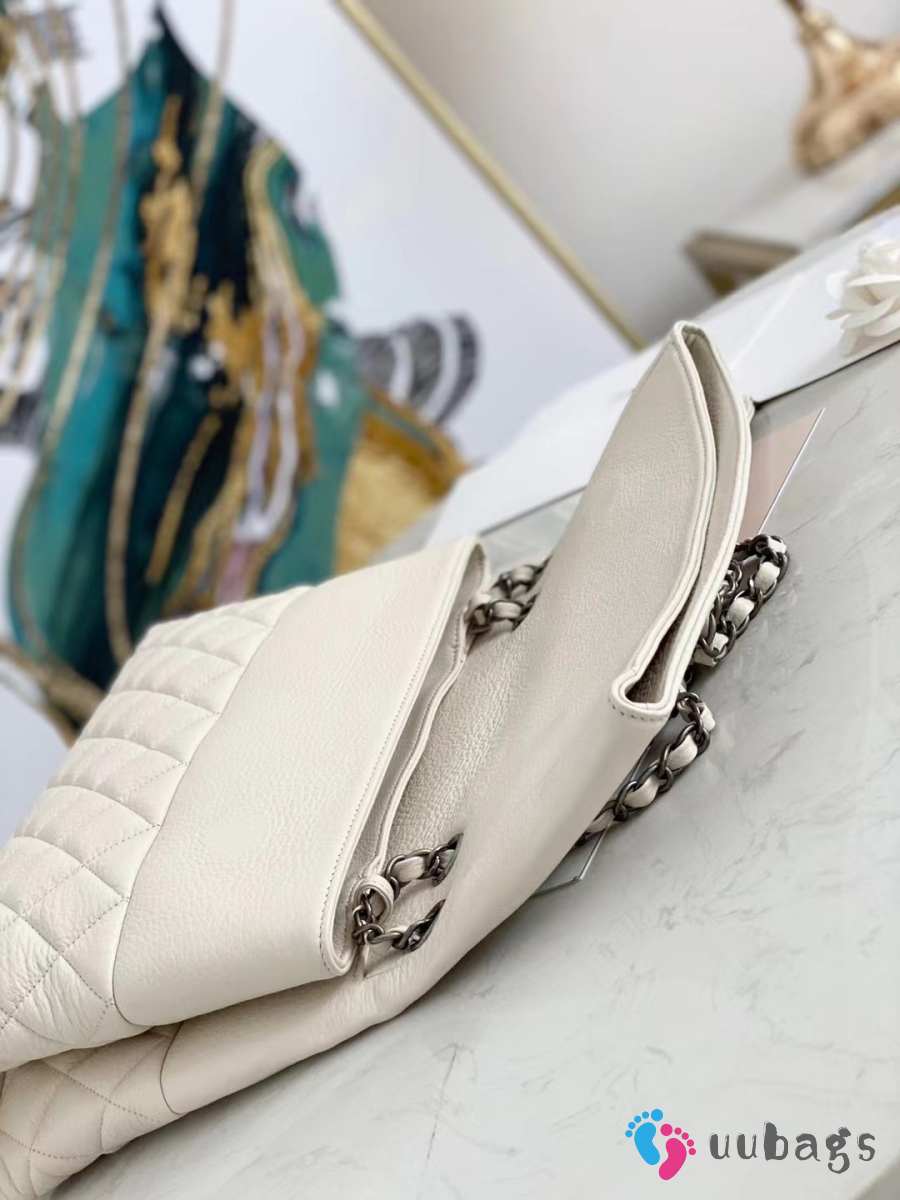 Uubags Chanel CC Quilted Lambskin Flap Shoulder Bag In Off-white 32x7.5x19cm