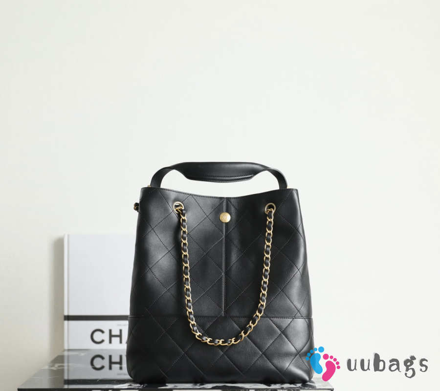 Uubags Chanel Classic Caviar Quilted Tote Bag with Gold Chain Shoulder Strap In Black 27x31x12cm