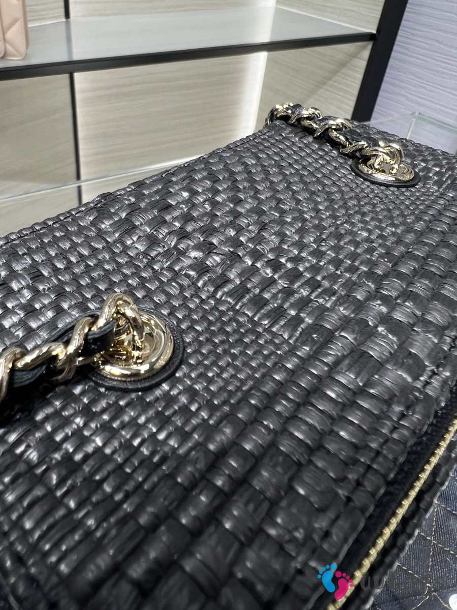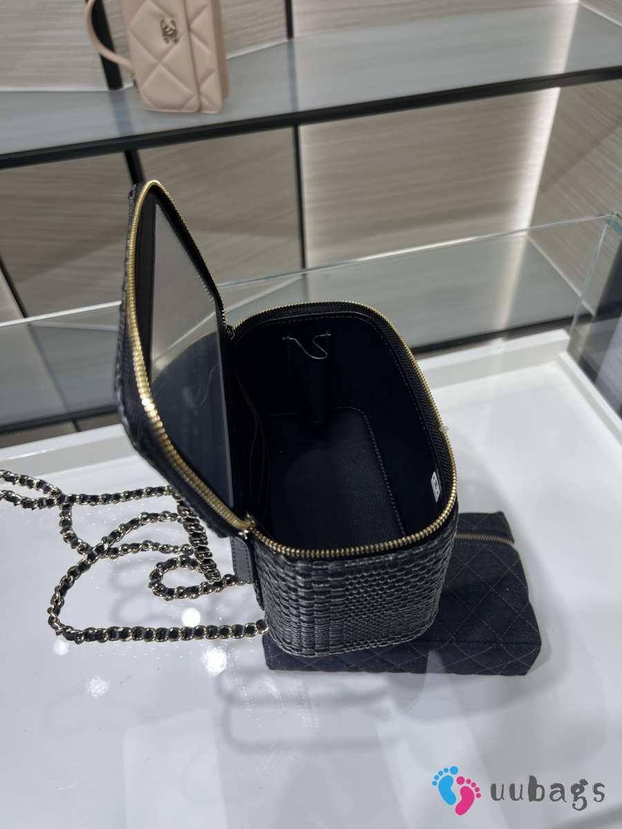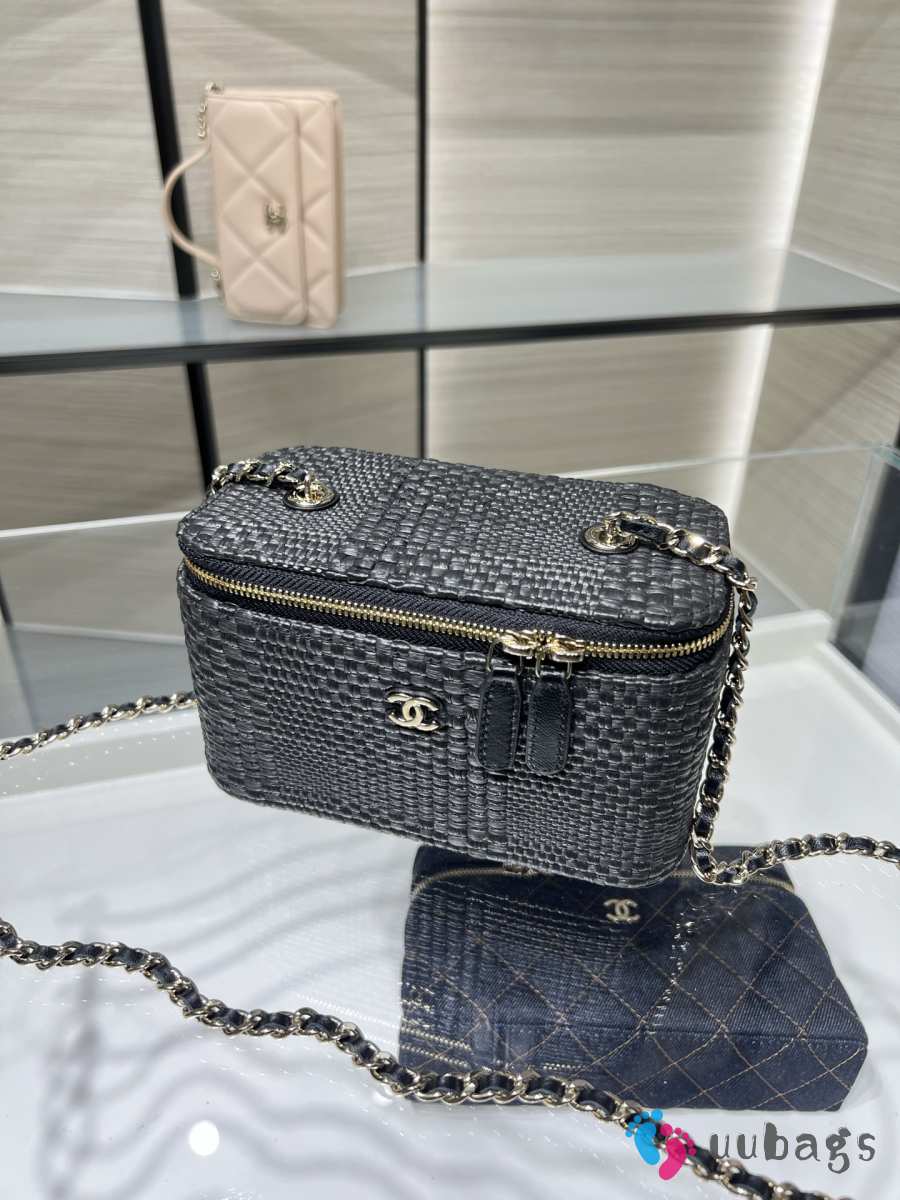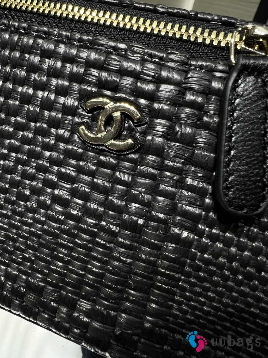 Uubags Chanel classic long vanity bag with shoulder strap braided raffia yarn & gold-colored metal in black 9.5x17x8cm