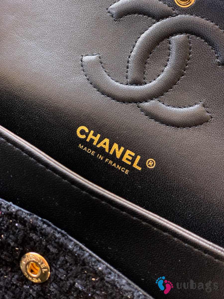 Uubags Chanel Classic Medium Handbag Cotton Tweed Black 25cm