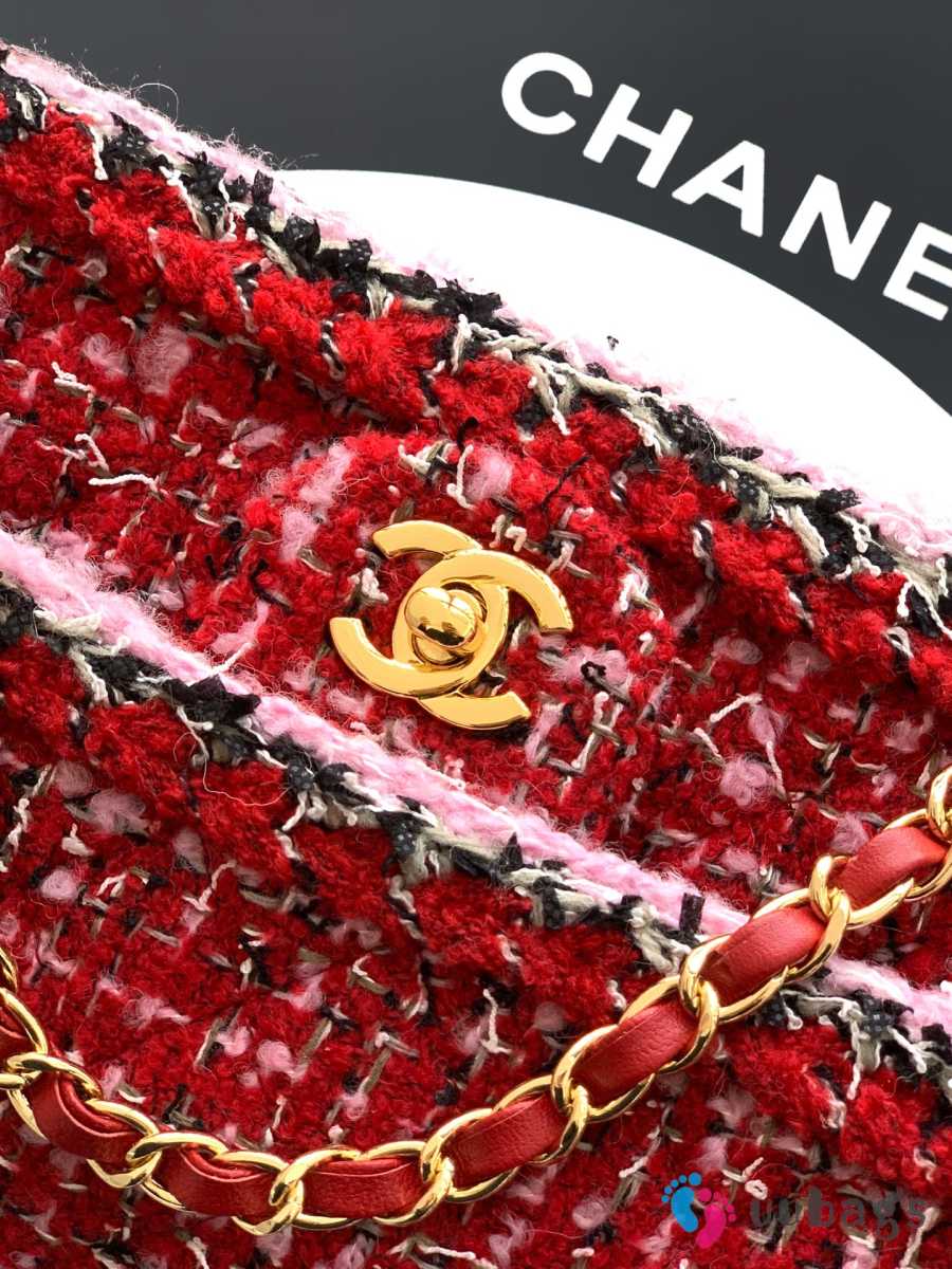 Uubags Chanel classic medium handbag tweed fabric & gold-plated metal red, pink & black 25cm