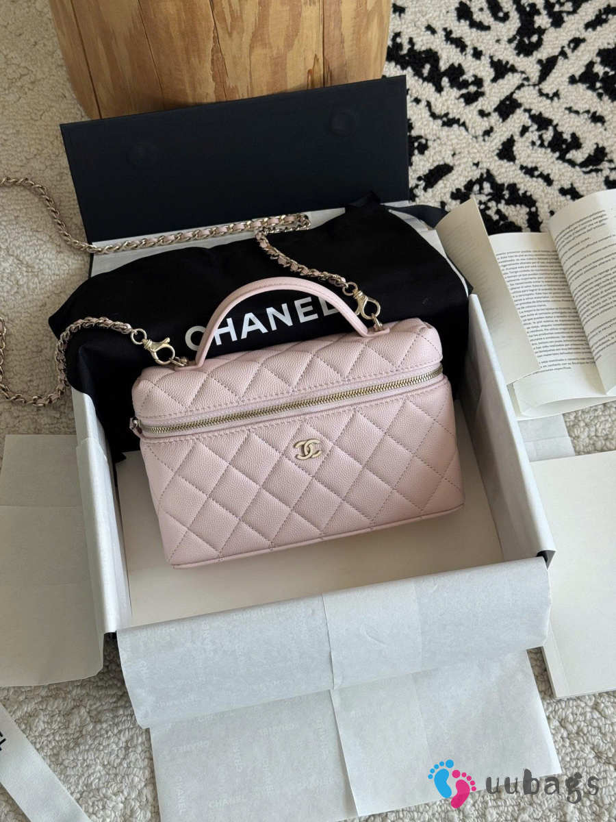 Uubags Chanel Classic Mini Bag Charm Grained Shiny Calfskin & Gold-Tone Metal In Light Pink 14x19x5cm
