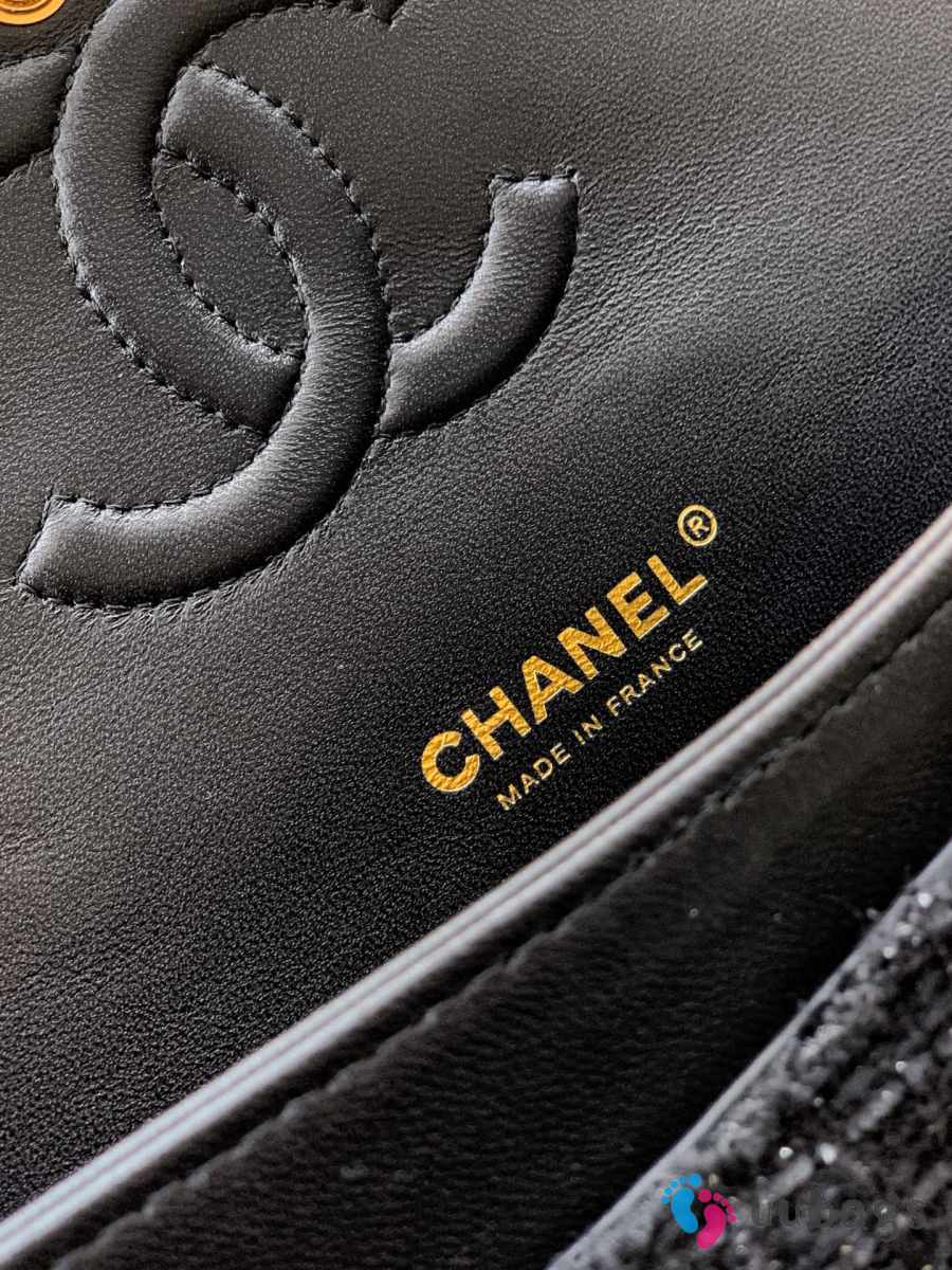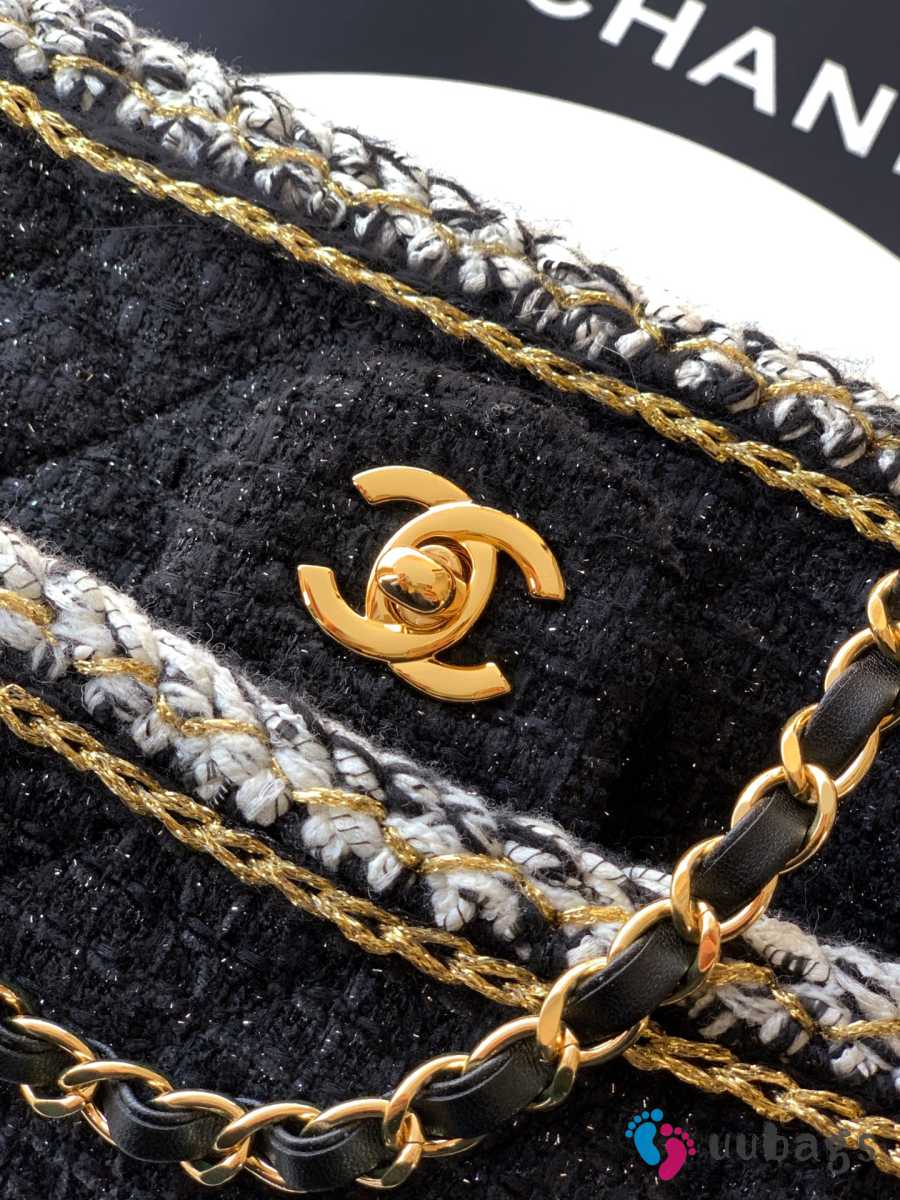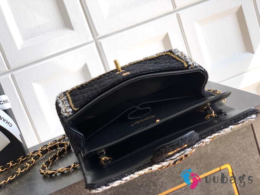 Uubags Chanel Classic Small Handbag Cotton Tweed Black 14.5x23x6cm