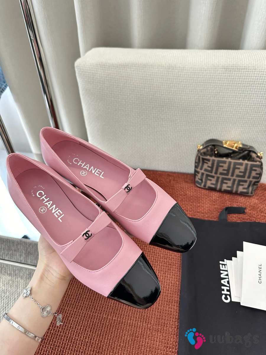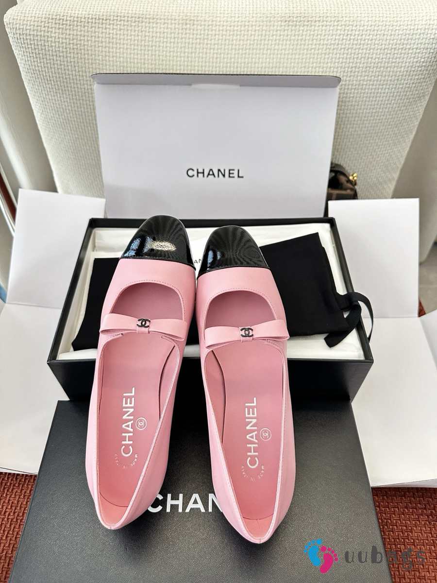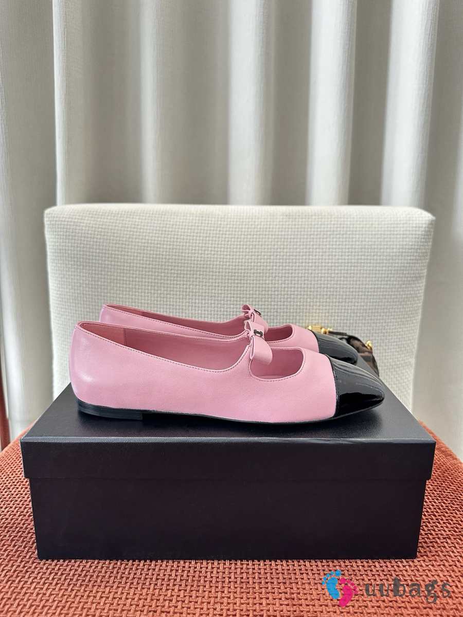 Uubags Chanel classic two-tone black/ pink ballerina flats