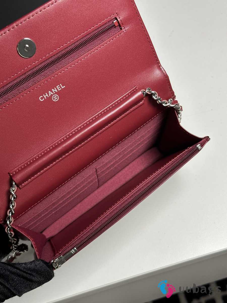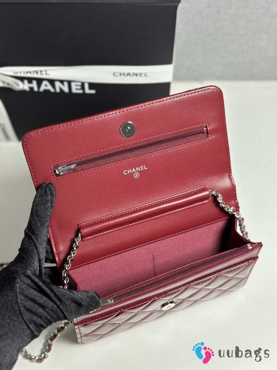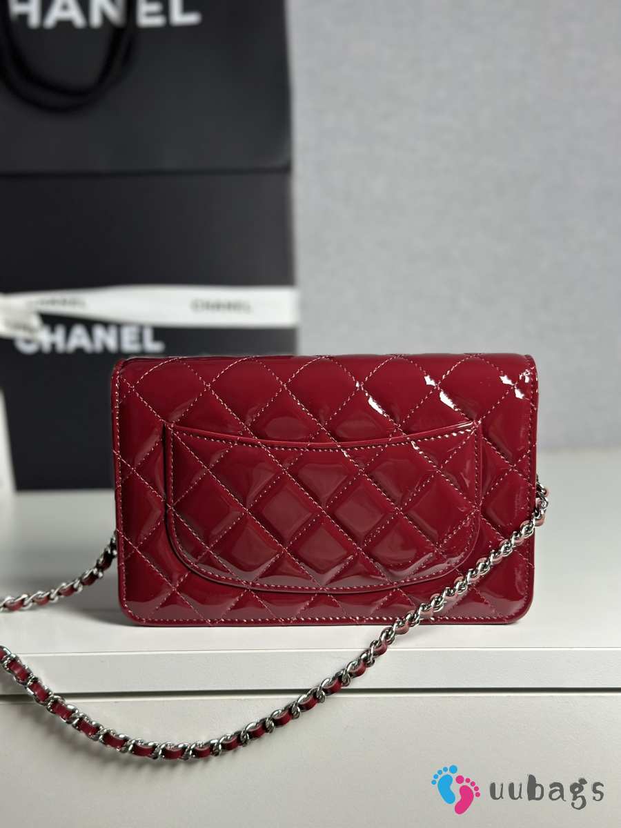 Uubags Chanel Classic Wallet on Chain Patent Leather & Silver-Tone Metal Red 12.3x19.2x3.5cm
