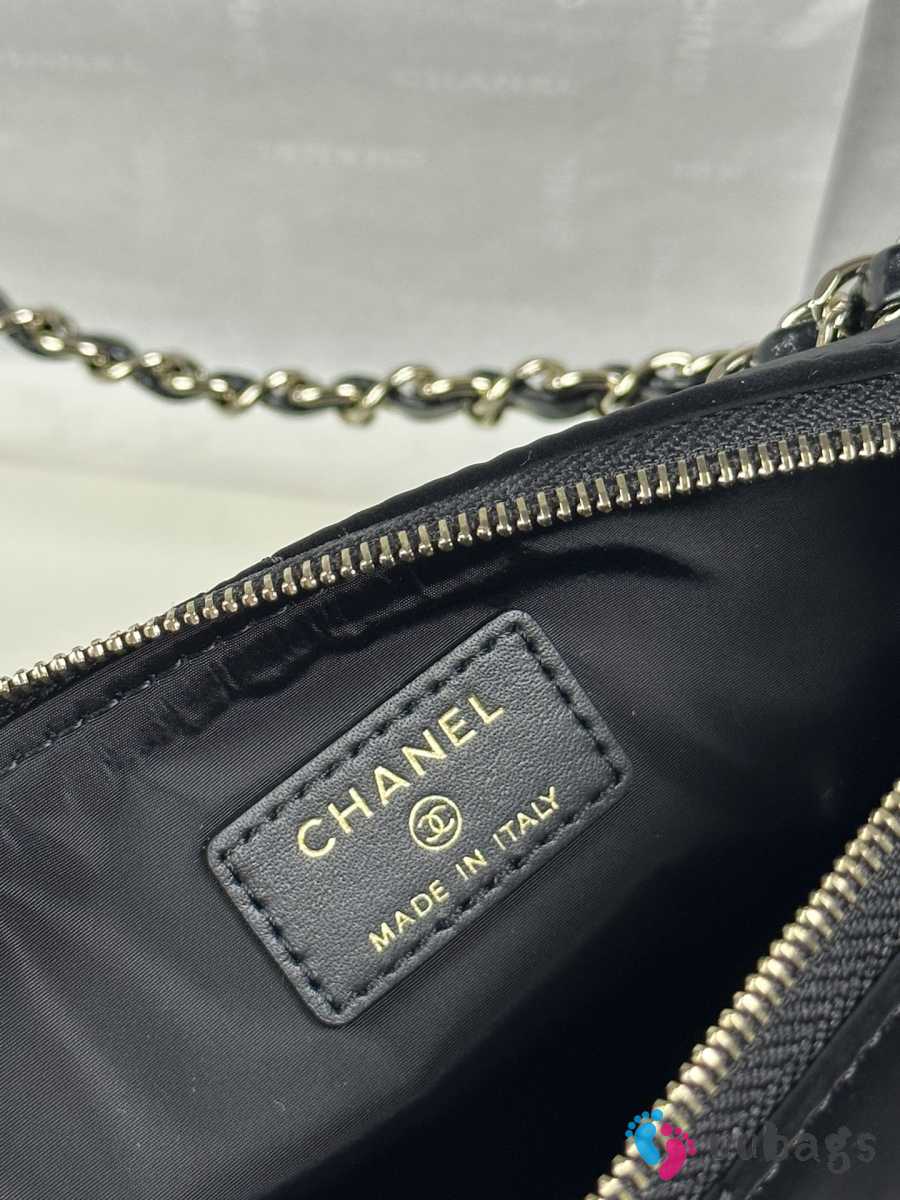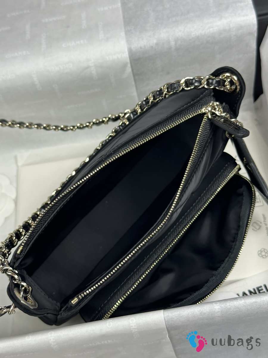 Uubags Chanel Clutch With Chain Velvet-Effect Nylon, Shiny Crumpled Calfskin & Gold-Tone Metal In Black 15x21x7.5cm