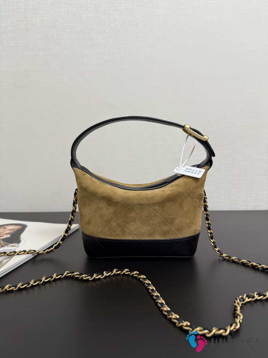 Uubags Chanel Clutch with strap Calfskin Suede, Glossy Sheepskin & Gold Metallic Brown/ Black 17.5x17.5x7.5cm