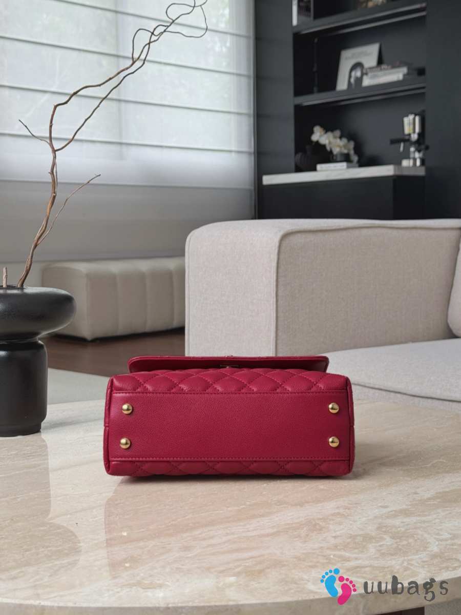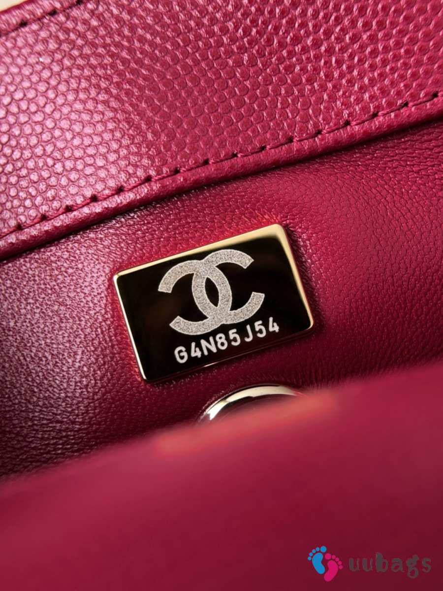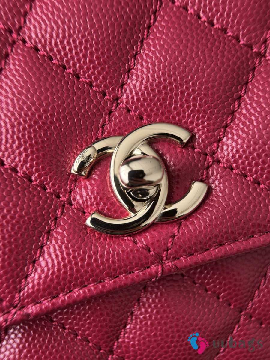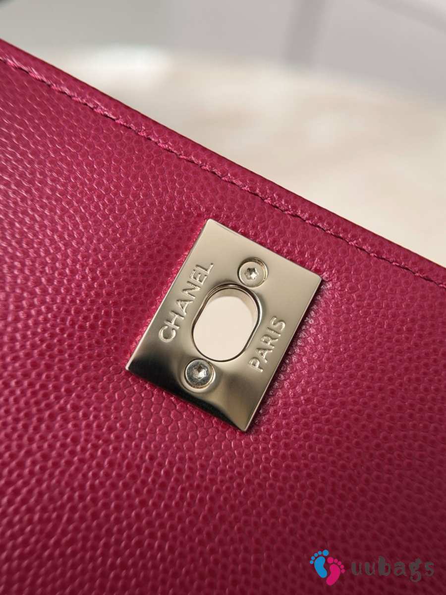 Uubags Chanel Coco Handle Flap Bag Dark Pink Caviar with Gold Hardware 14x24x10cm