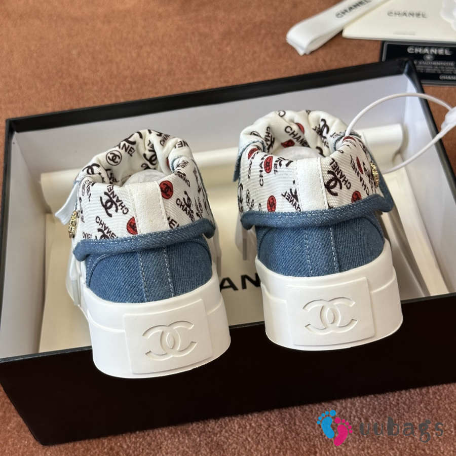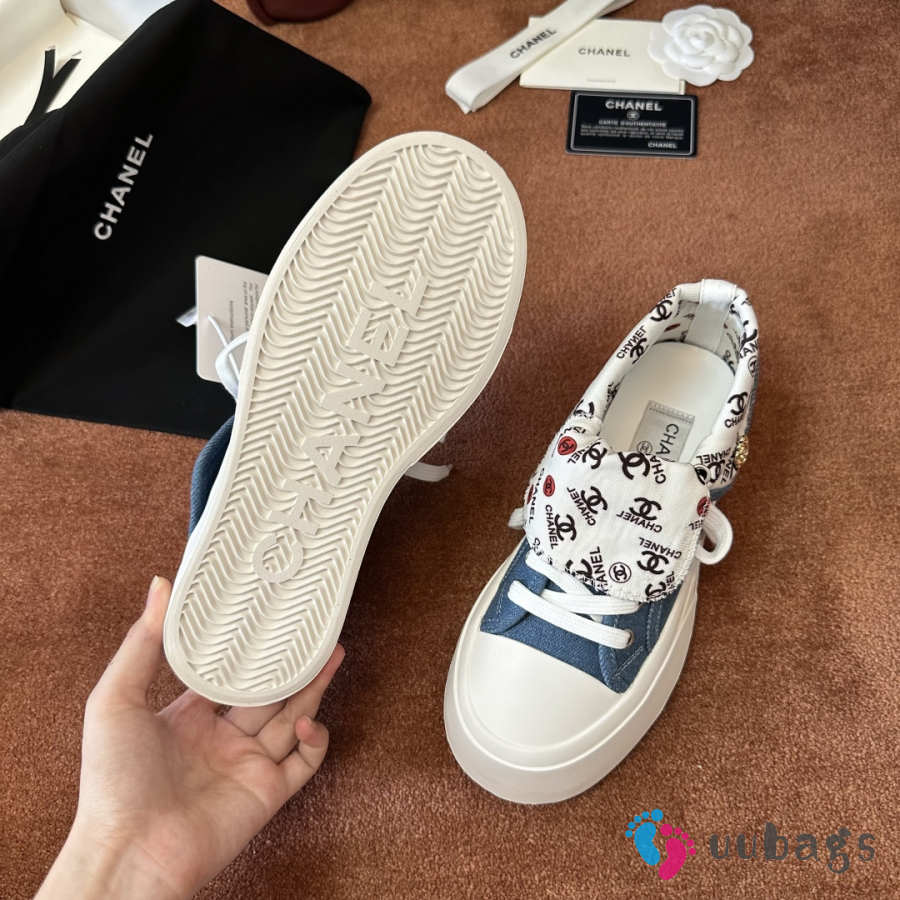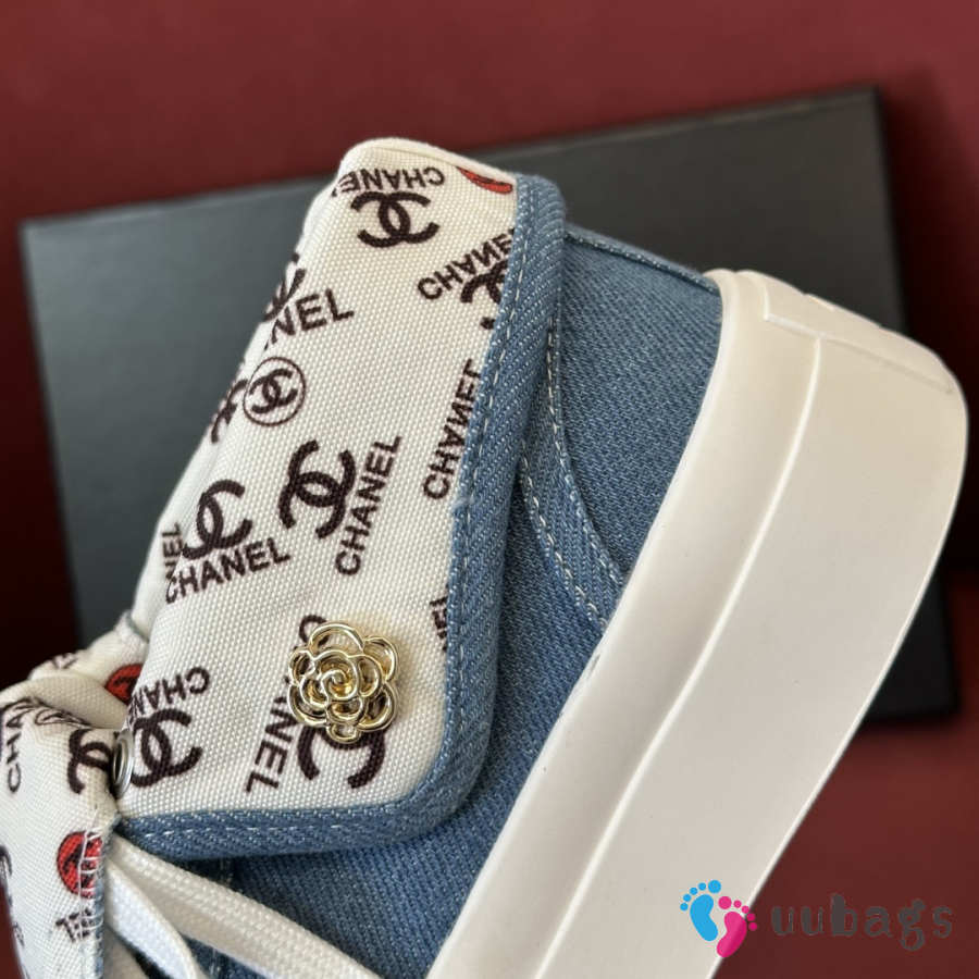 Uubags Chanel Denim Platform Sneakers with CC Logo Lining