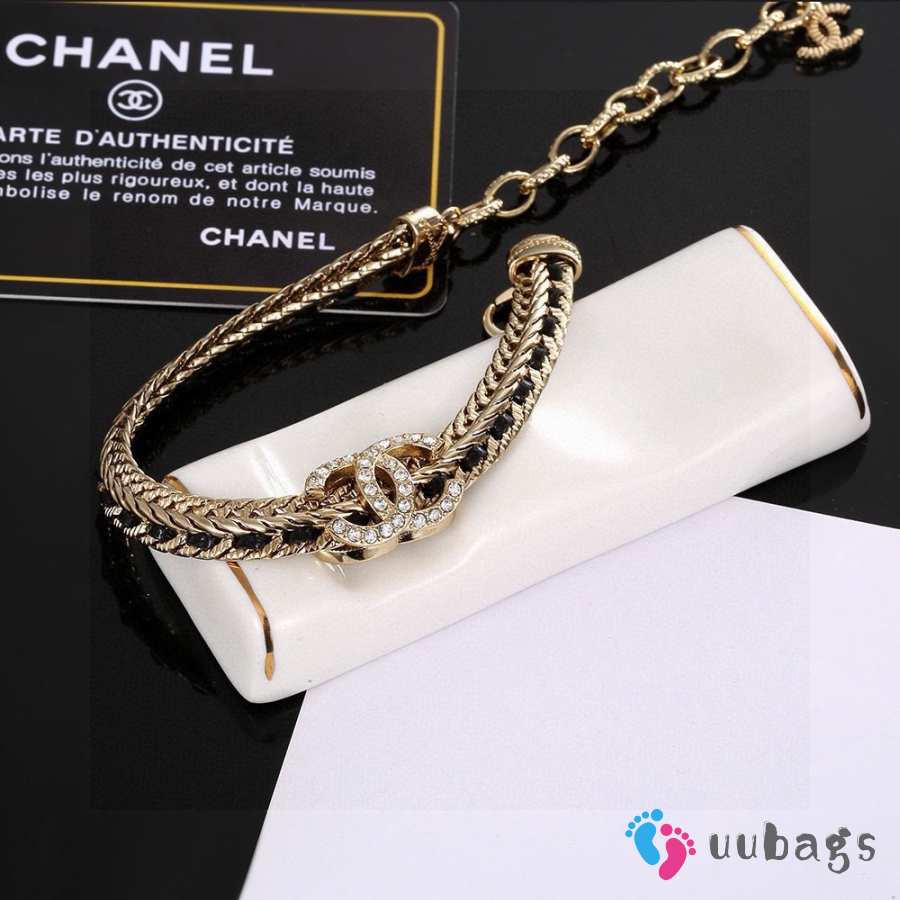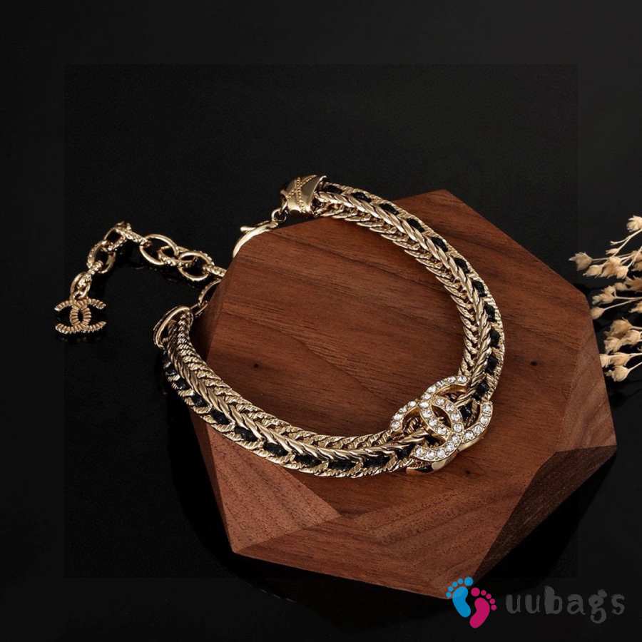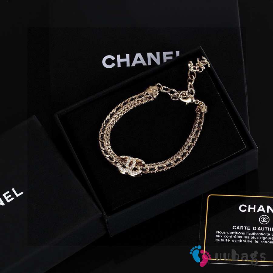 Uubags Chanel Double C Crystal Chain Bracelet in Gold