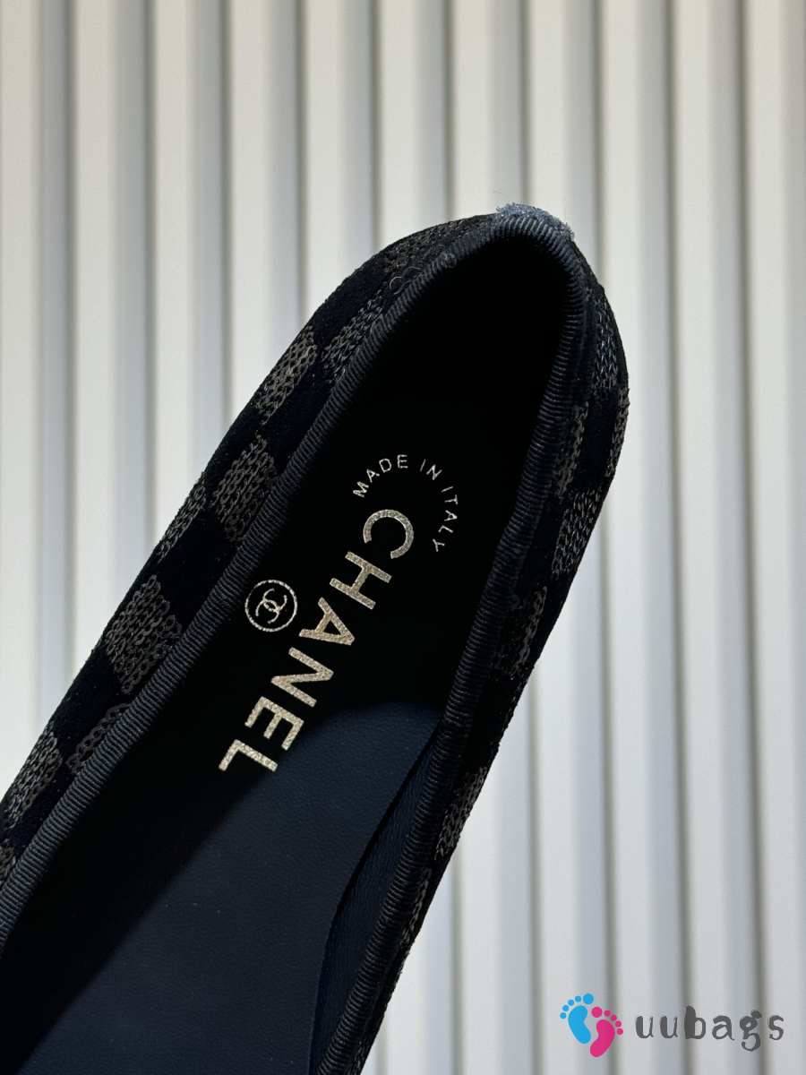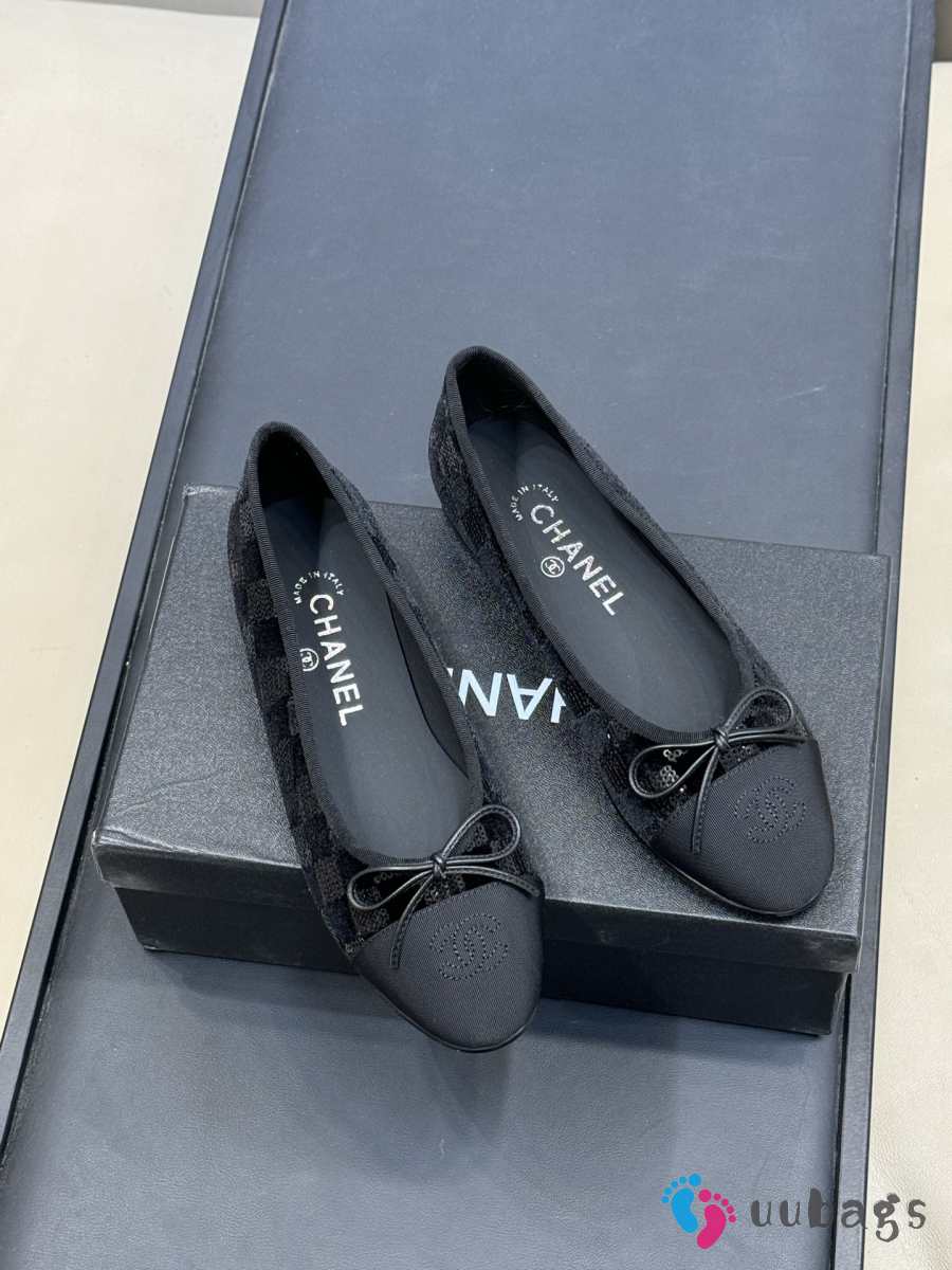 Uubags Chanel G02819 ballet flats black sequins & grosgrain
