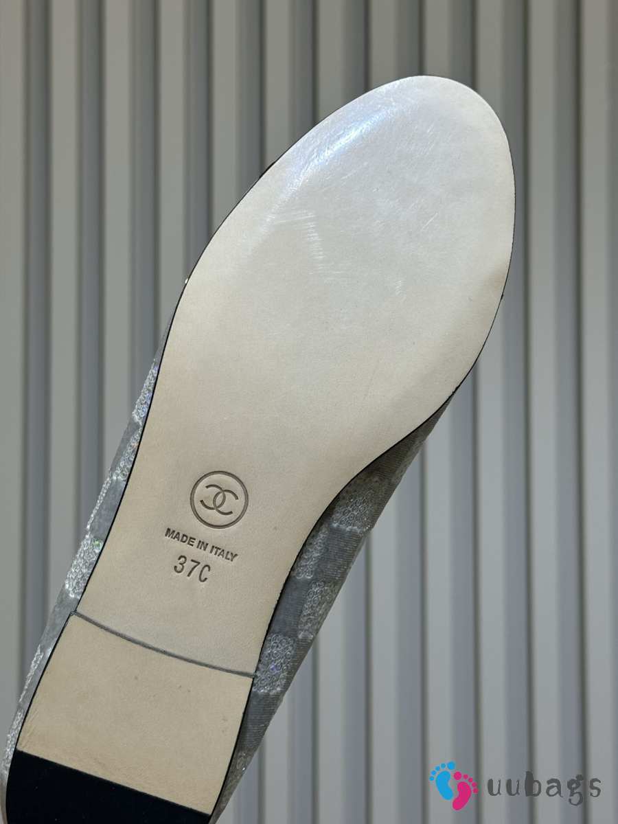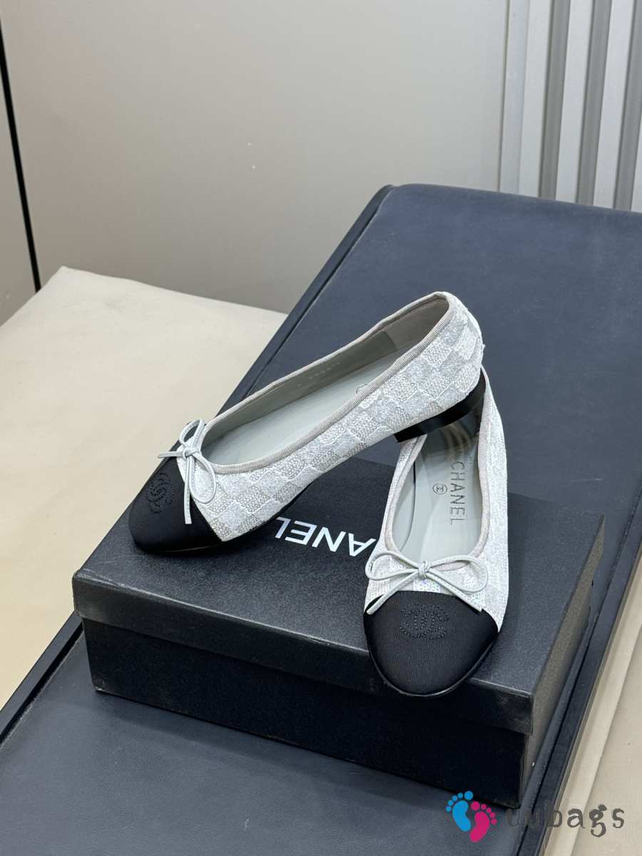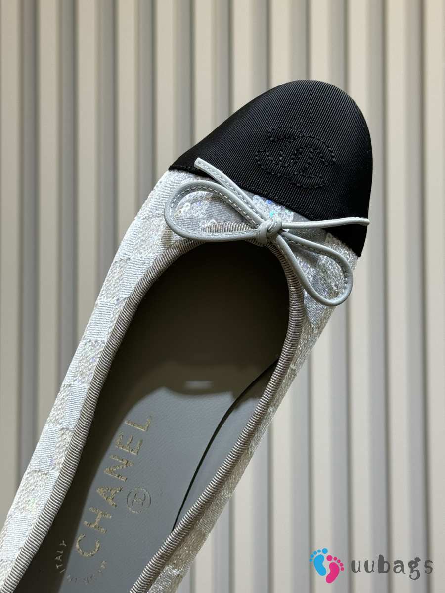 Uubags Chanel G02819 ballet flats white/black sequins & grosgrain