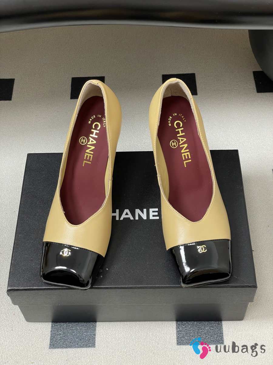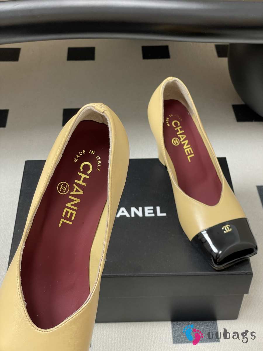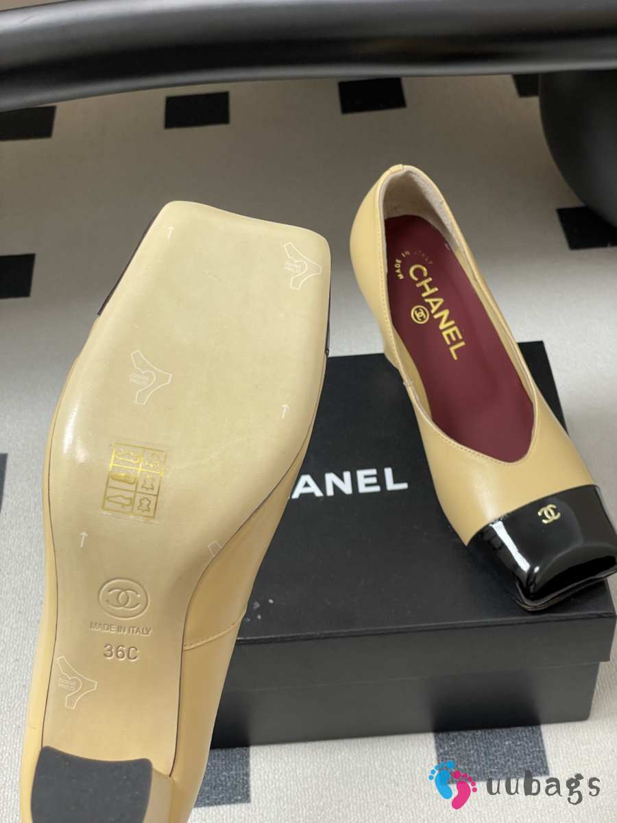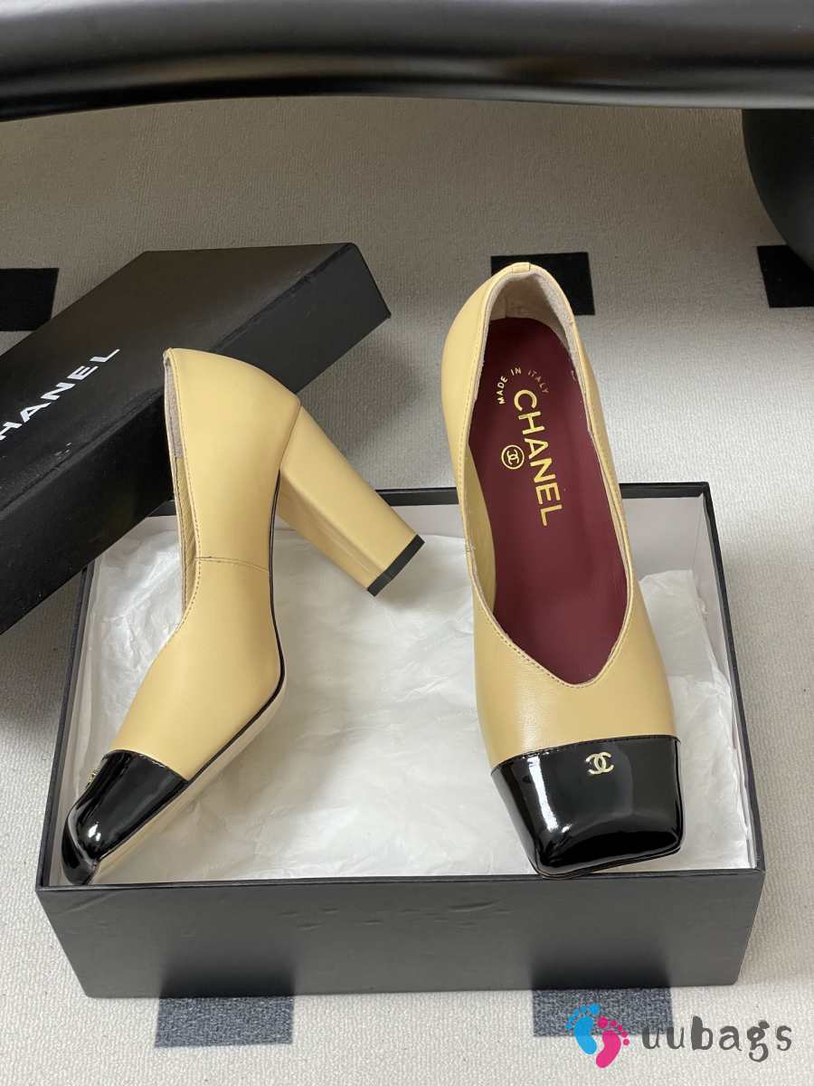 Uubags Chanel High Heels Glossy Sheepskin & Calfskin In Black/ Beige 9cm