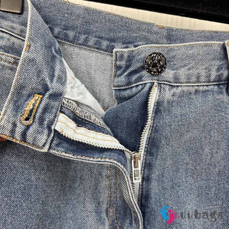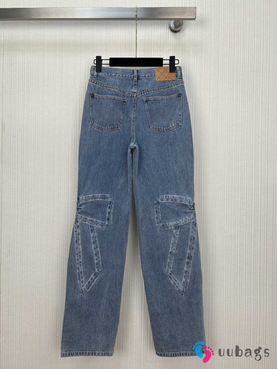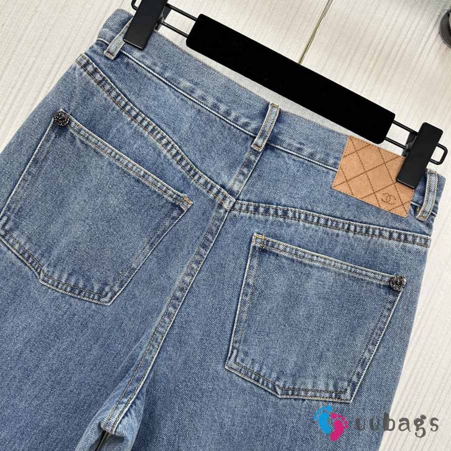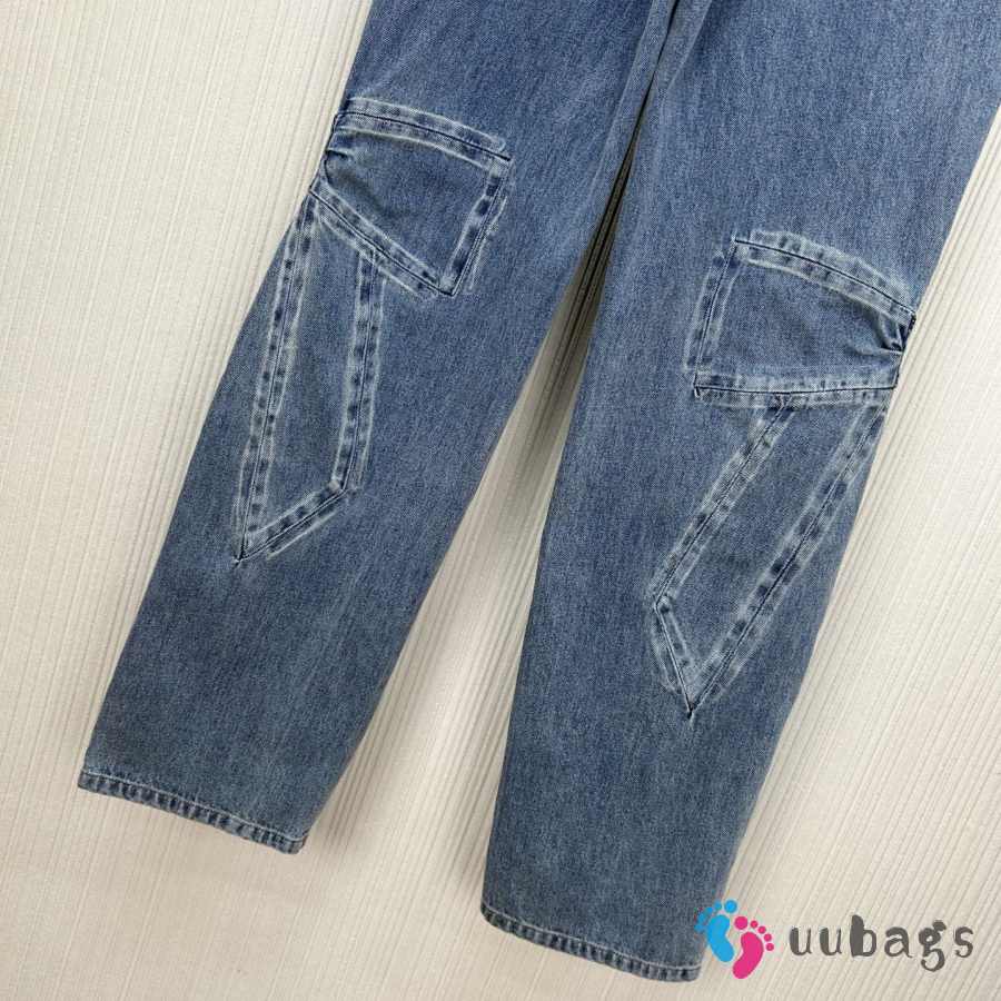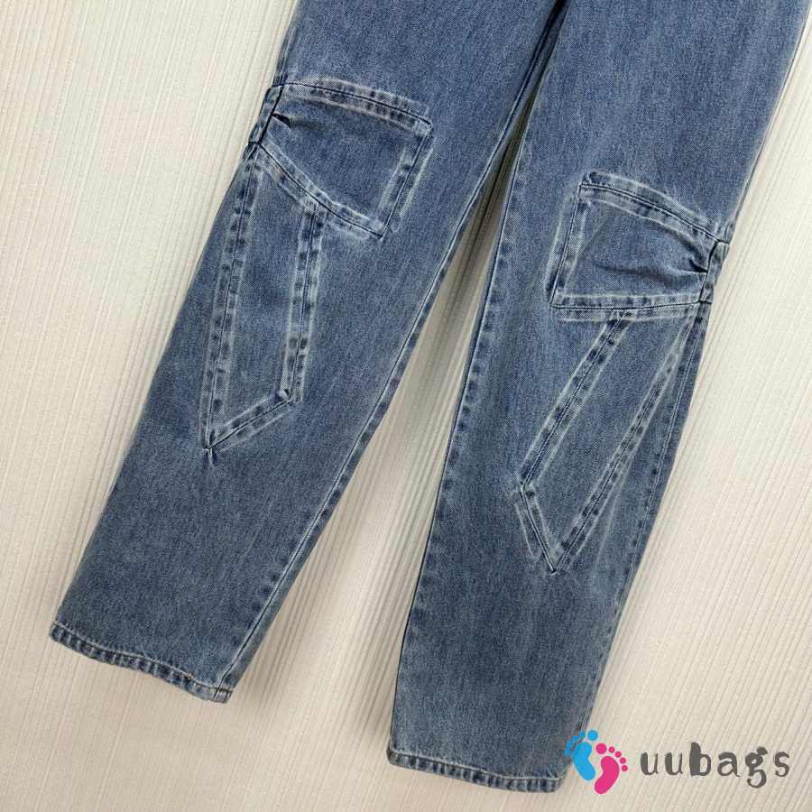 Uubags Chanel High-Waisted Straight-Leg Denim Jeans with 3D Cargo Knee Pockets