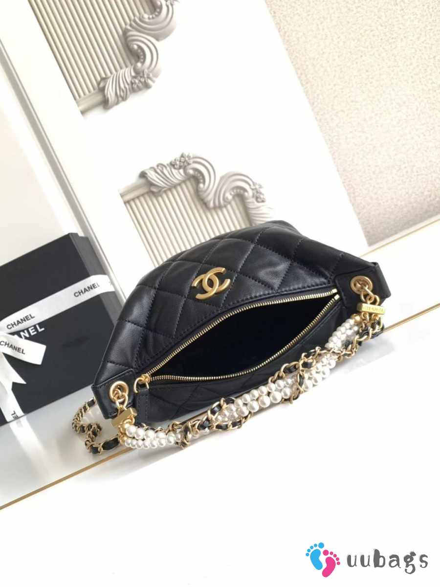 Uubags Chanel Hobo Handbag in Shiny Lambskin 13x23.5x7.5cm