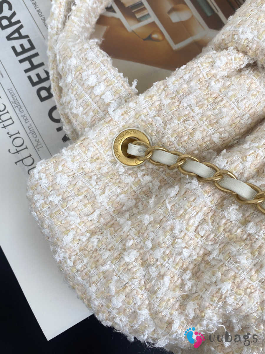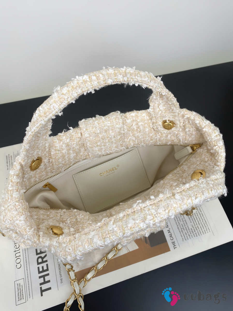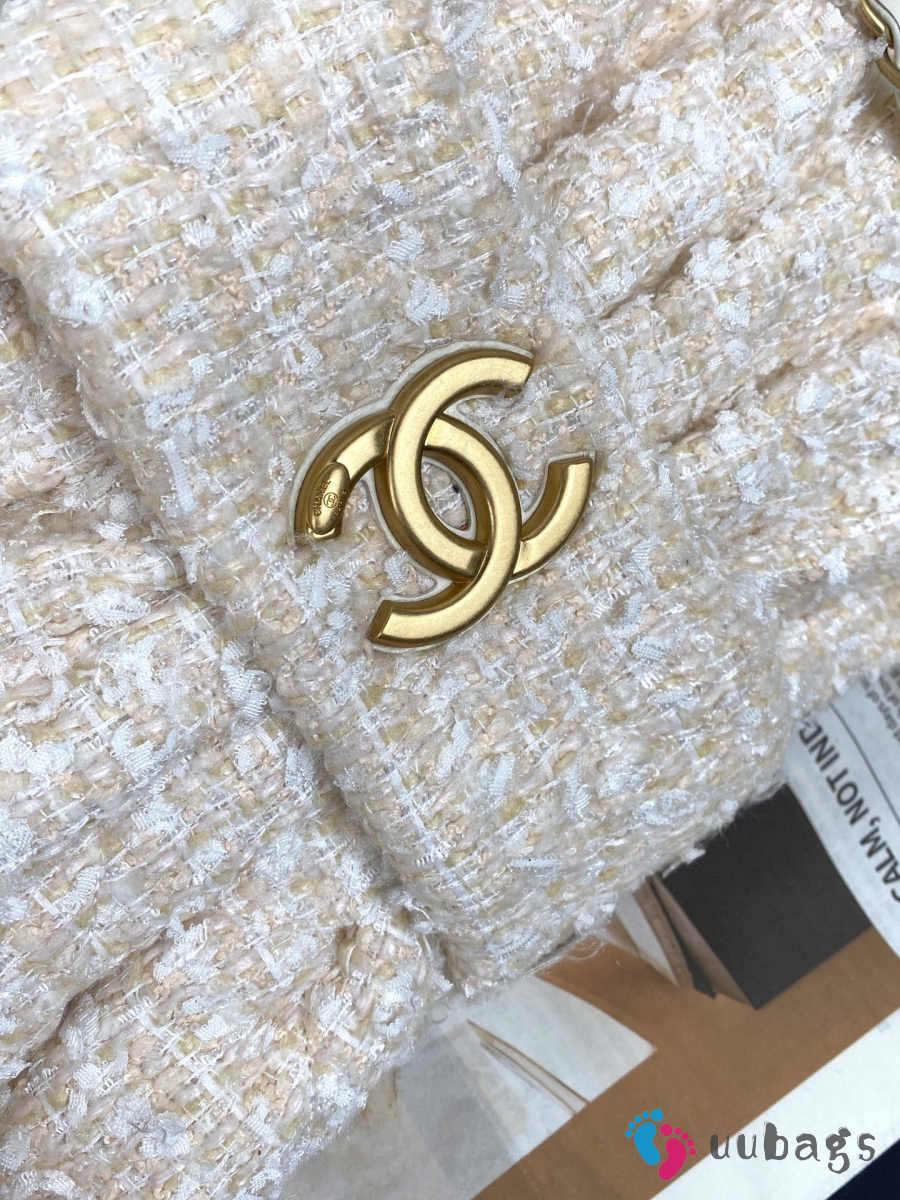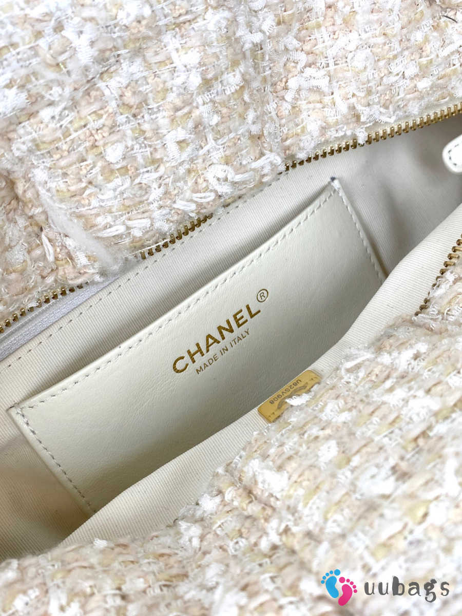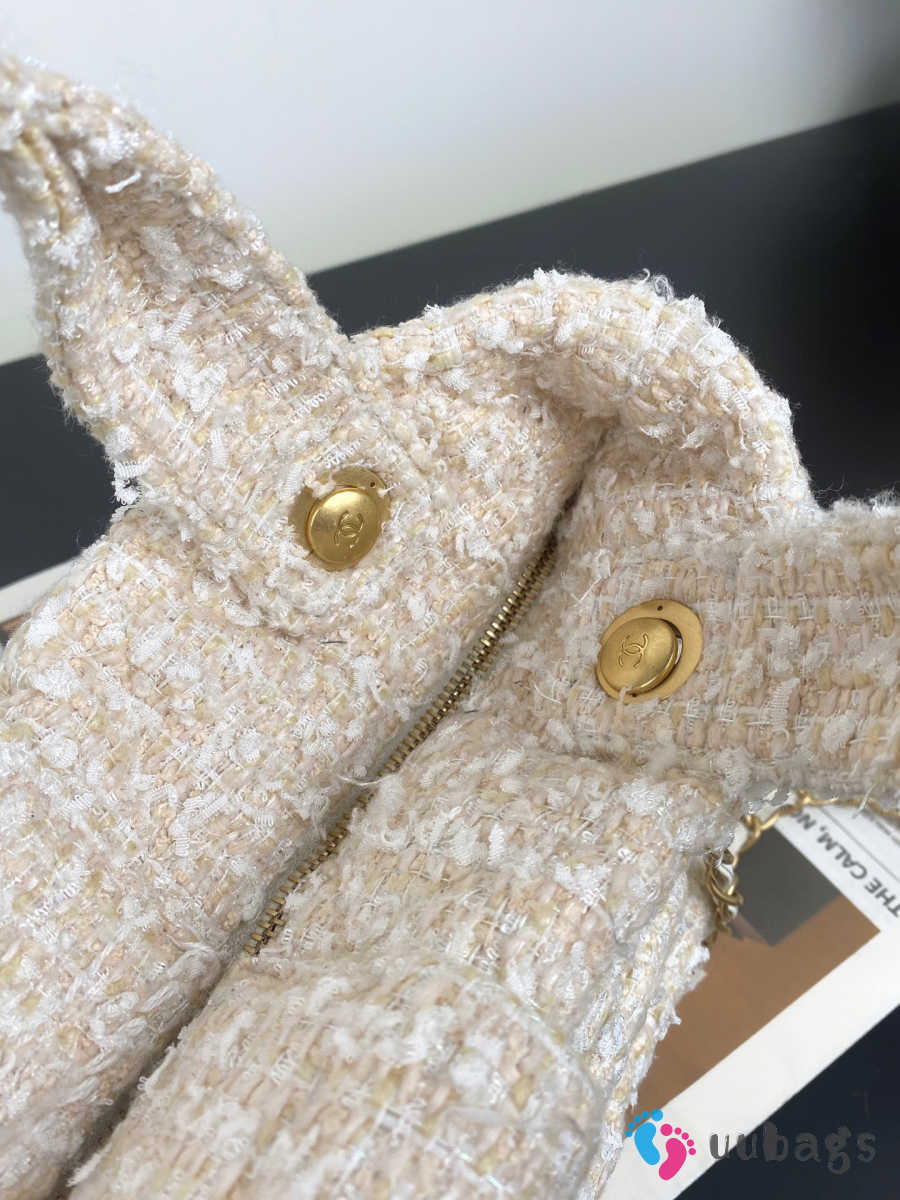 Uubags Chanel large bow bag tweed fabric & gold-plated metal in beige & white 39x5x25cm