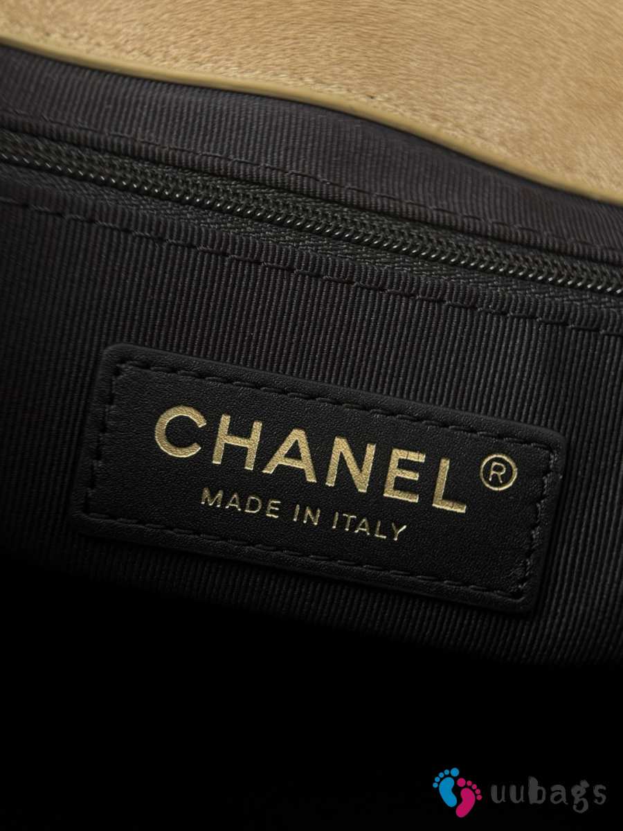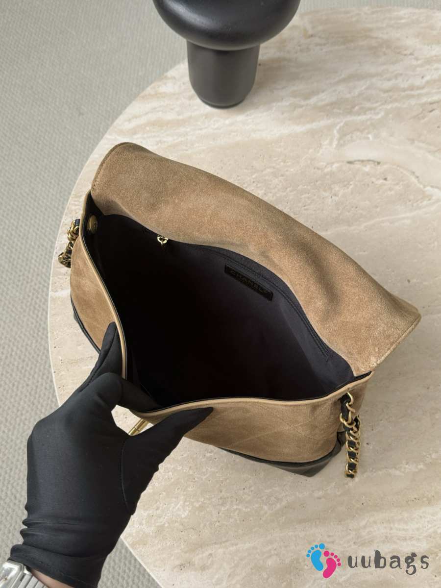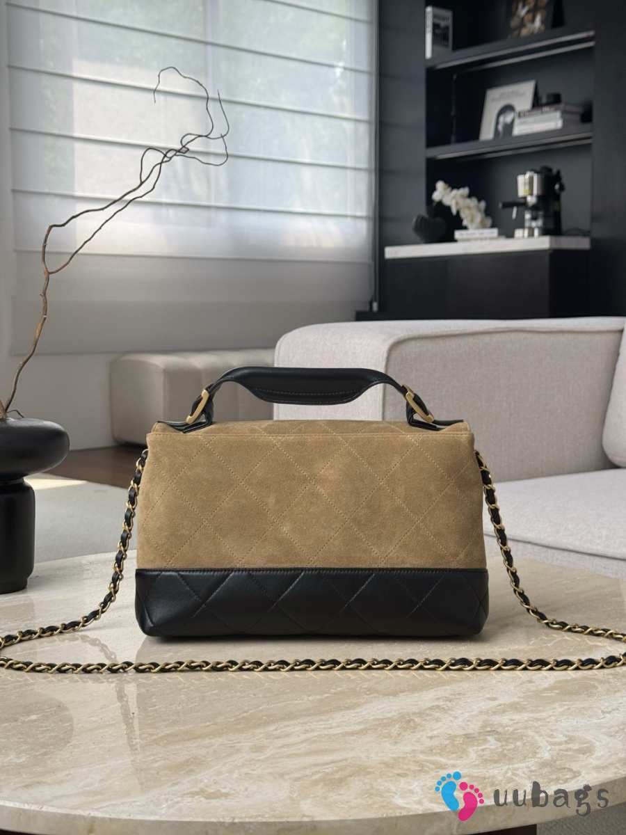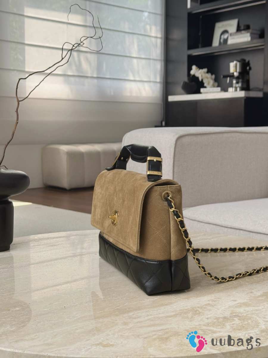Uubags Chanel large flap bag with handle suede, shiny lambskin & gold metallic in beige & black 18x29x8cm