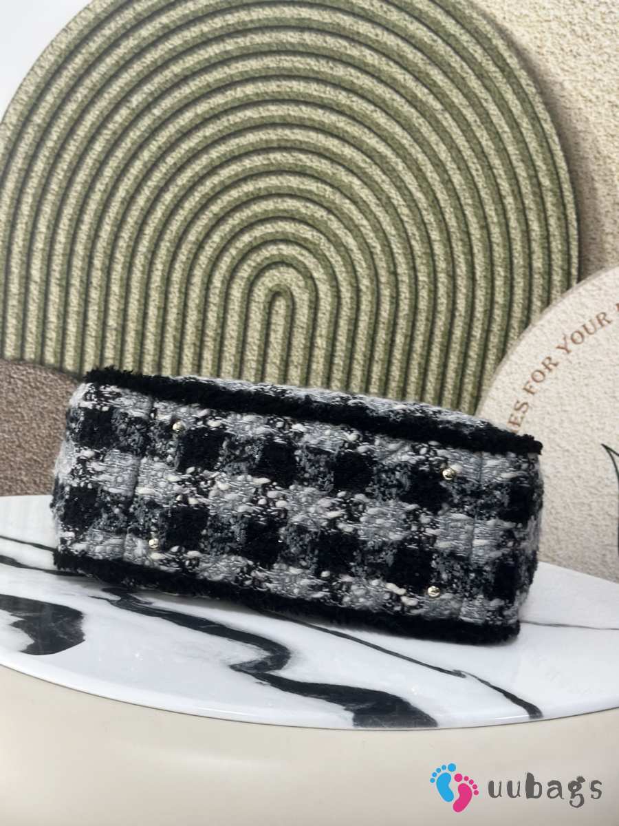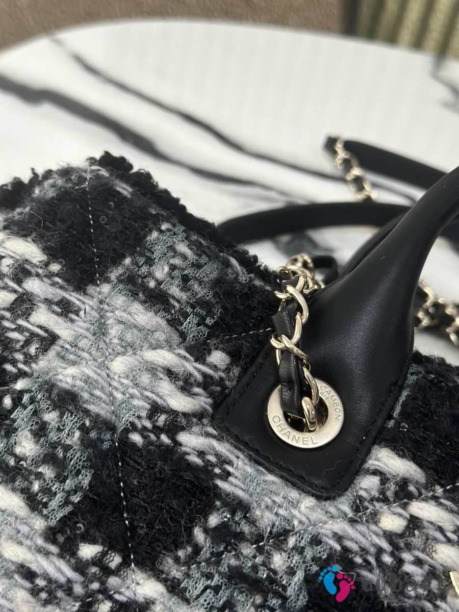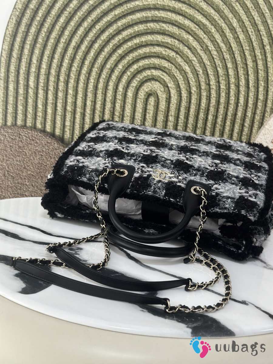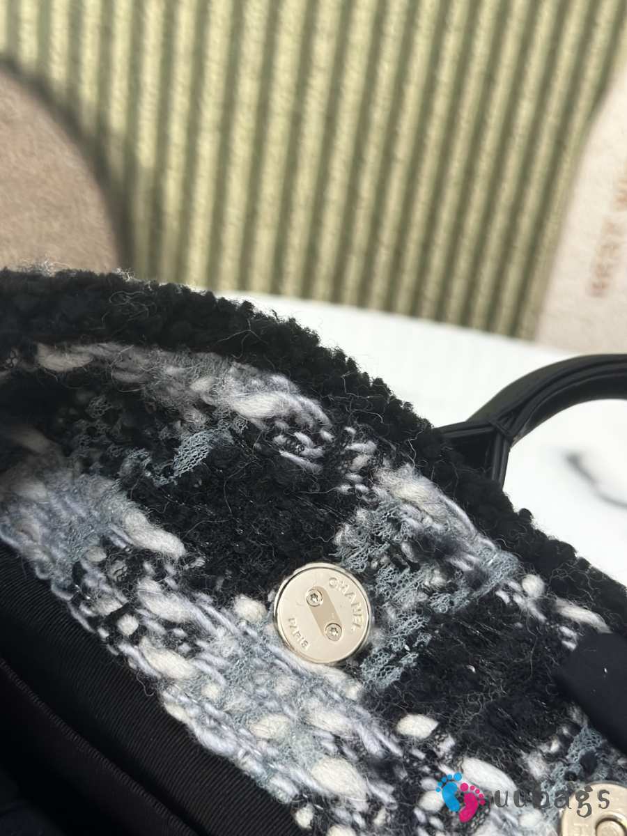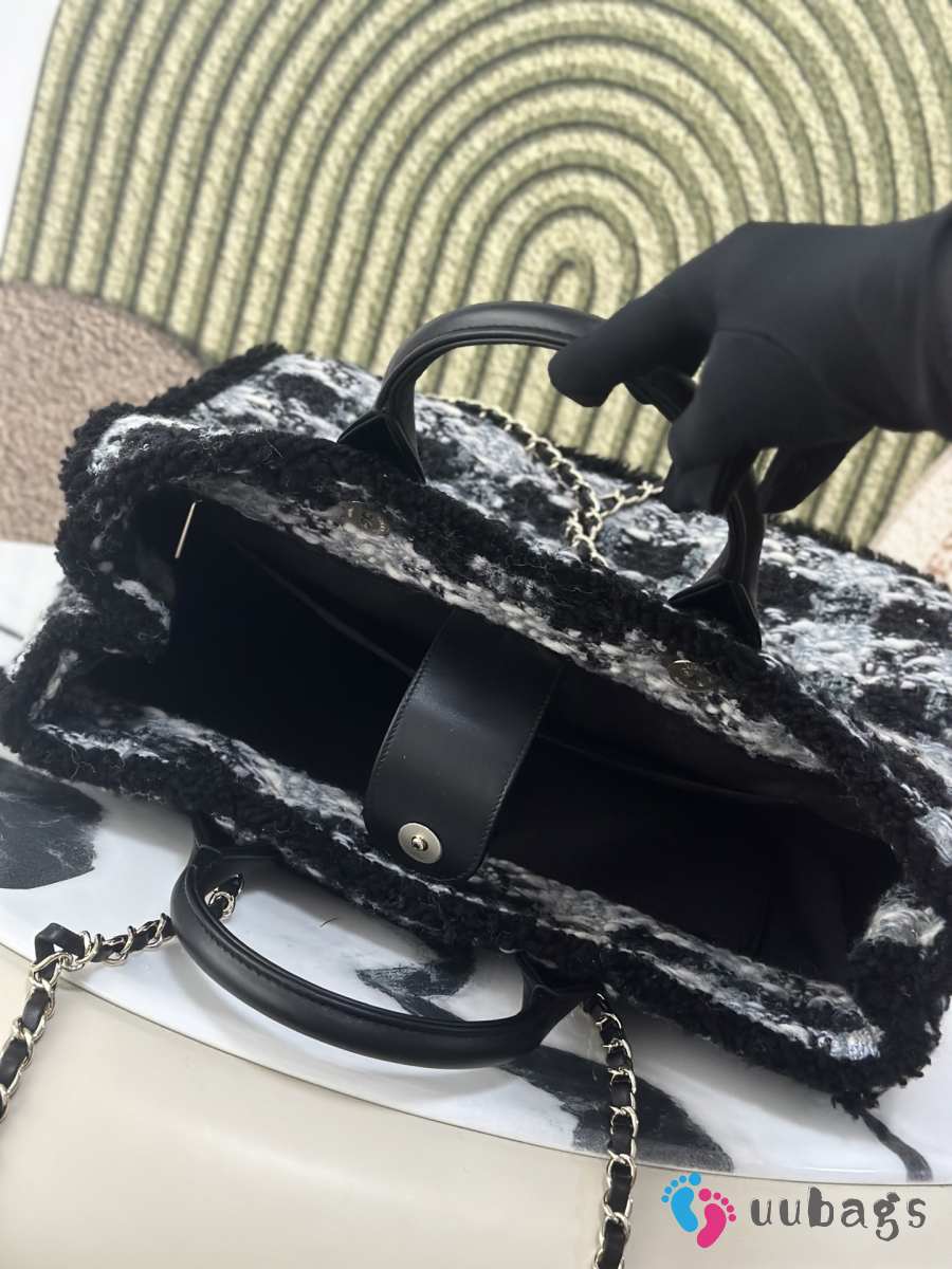Uubags Chanel Large Shopping Bag Tweed, Shearling Lambskin & Gold-Tone Metal In Black & Gray 27.5x39.5x16cm