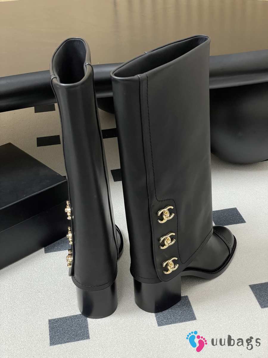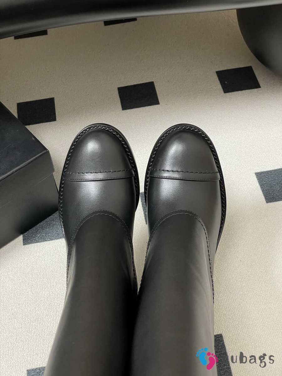 Uubags Chanel Leather Knee Boots with CC Logos In Black 7cm