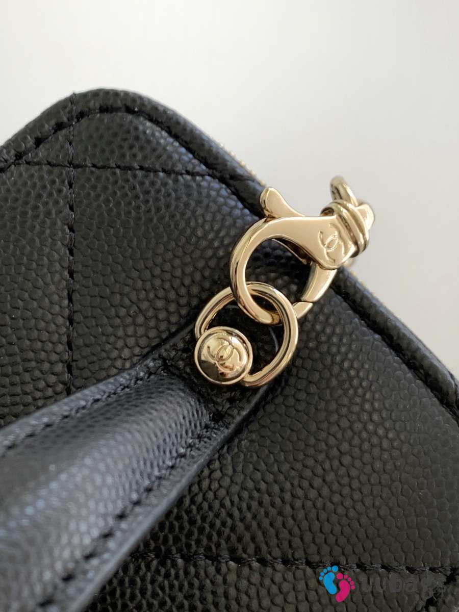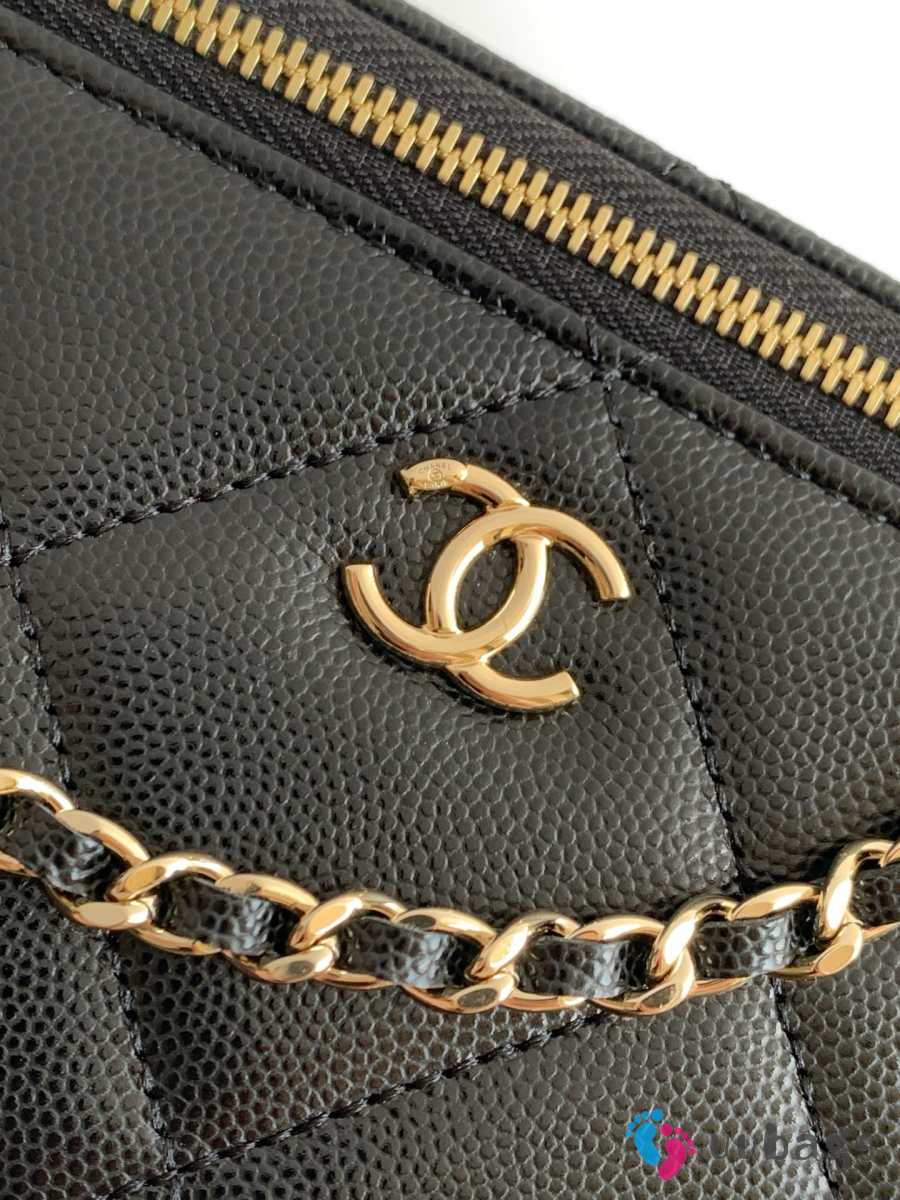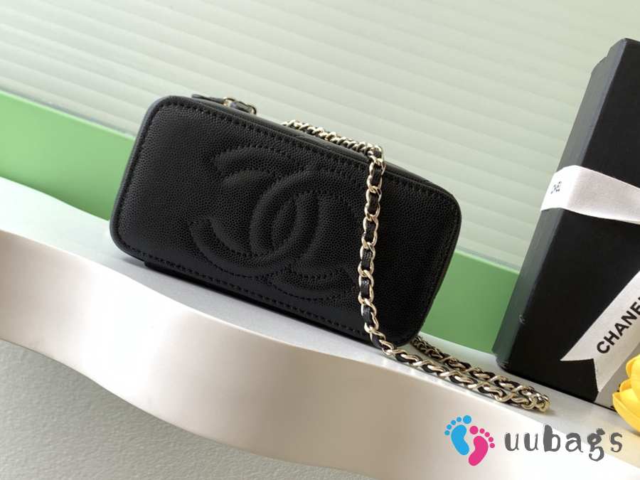 Uubags Chanel long vanity bag with chain grained shiny calfskin & gold-tone metal in black 9.5x17x8cm
