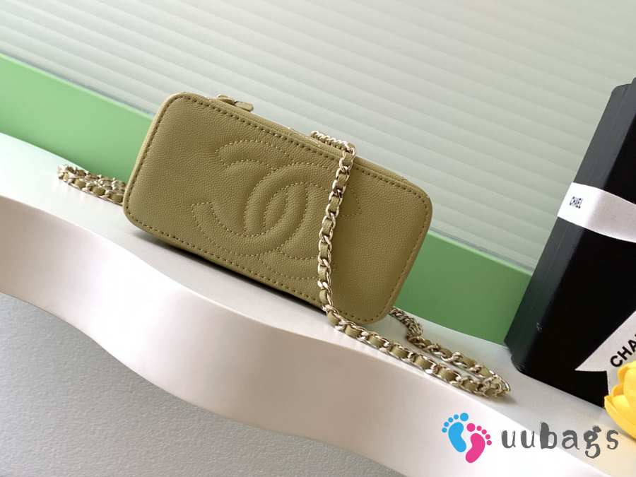 Uubags Chanel long vanity bag with chain grained shiny calfskin & gold-tone metal in pale yellow 9.5x17x8cm