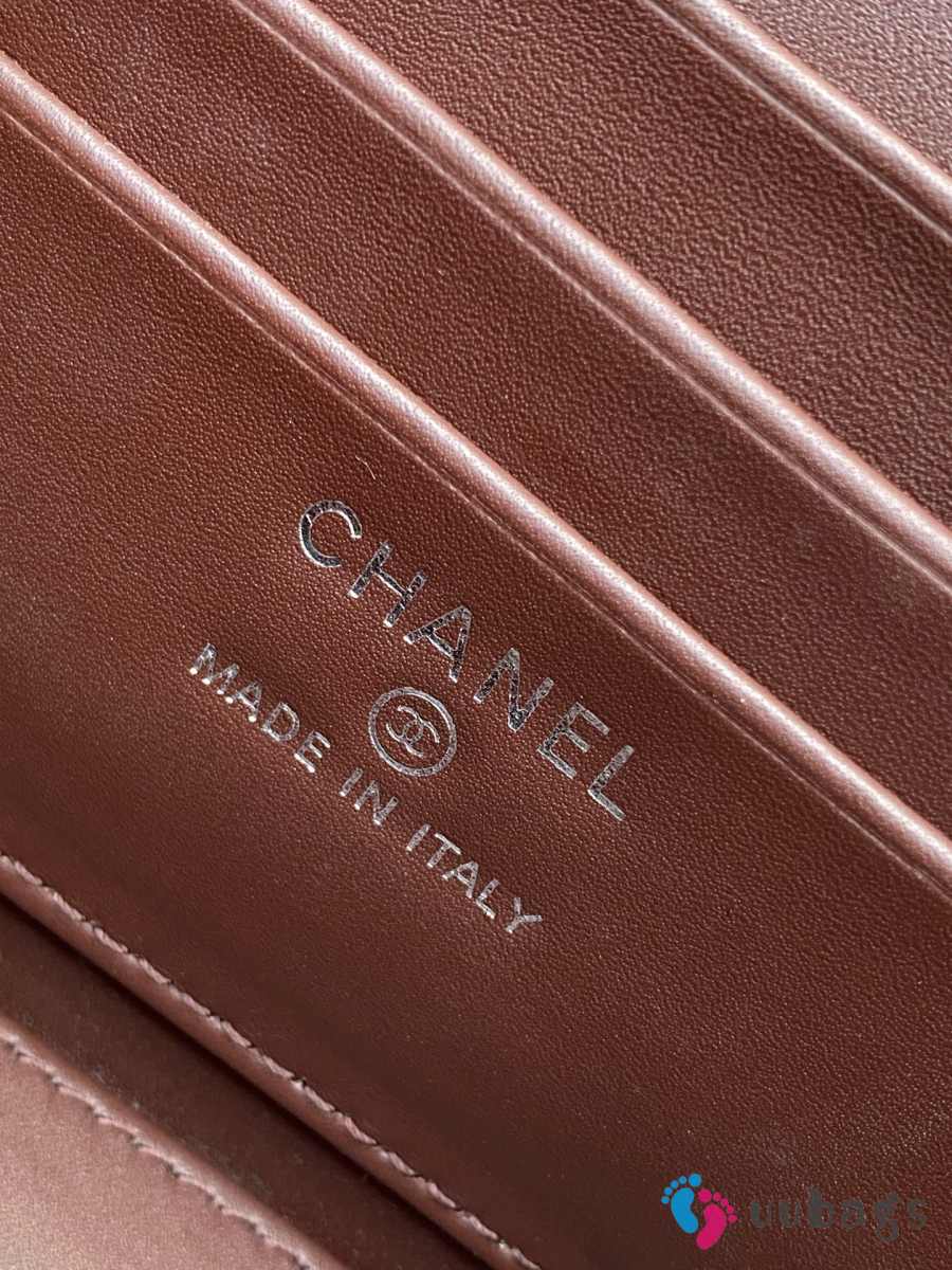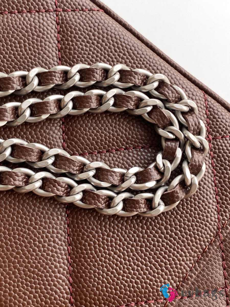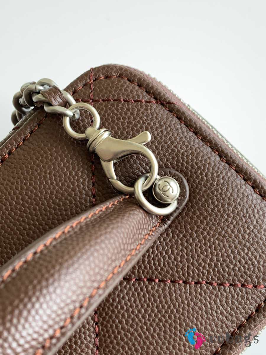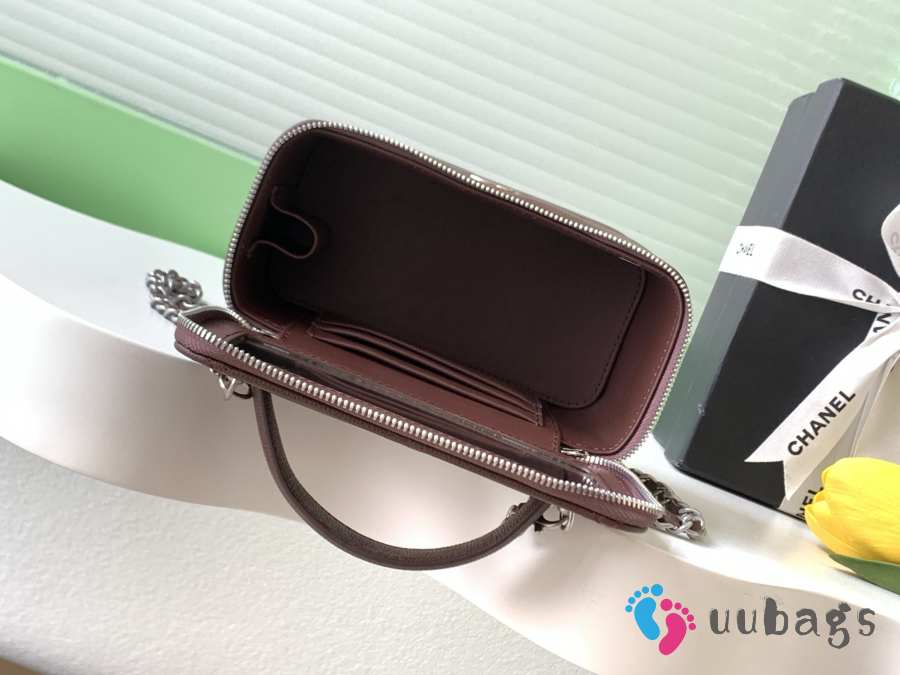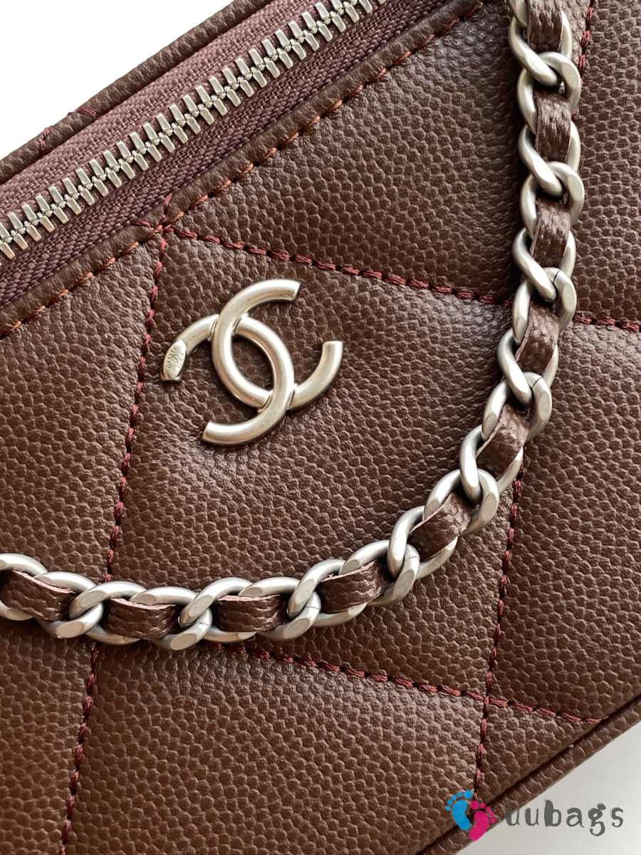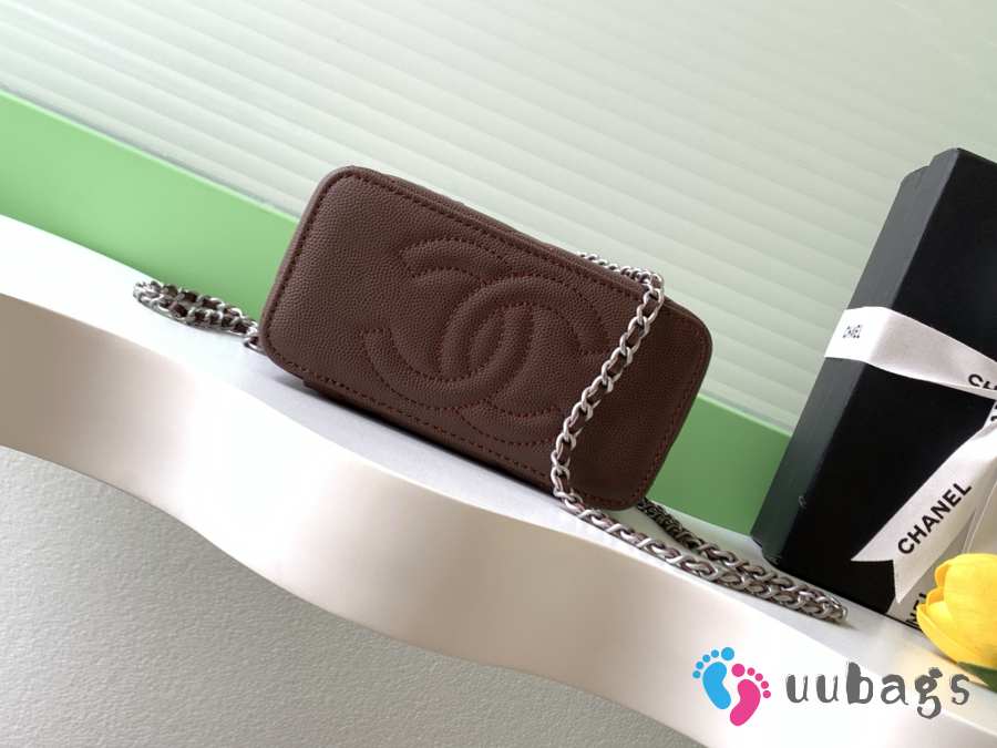 Uubags Chanel long vanity bag with chain grained shiny calfskin & silver-tone metal in dark brown 9.5x17x8cm