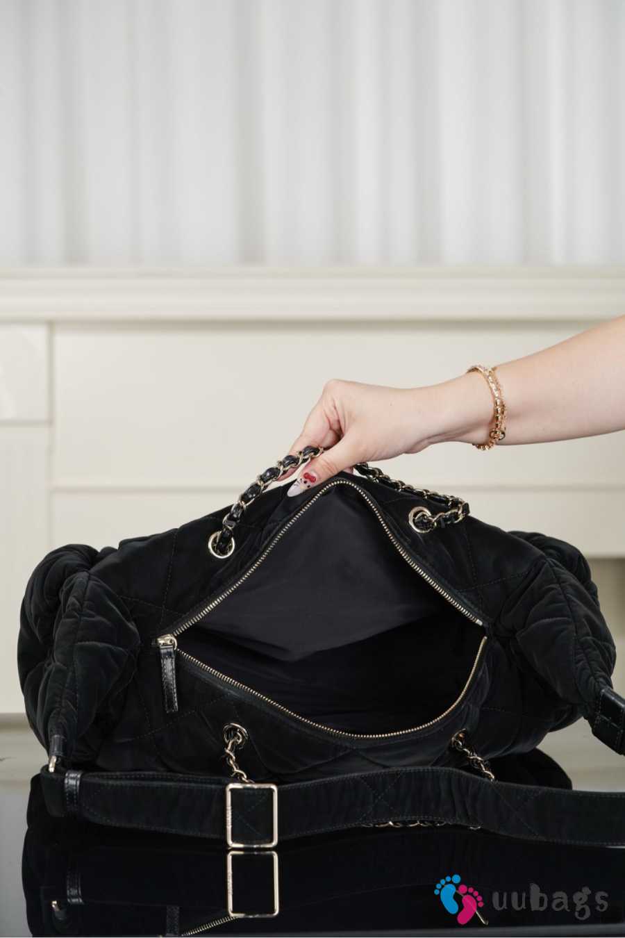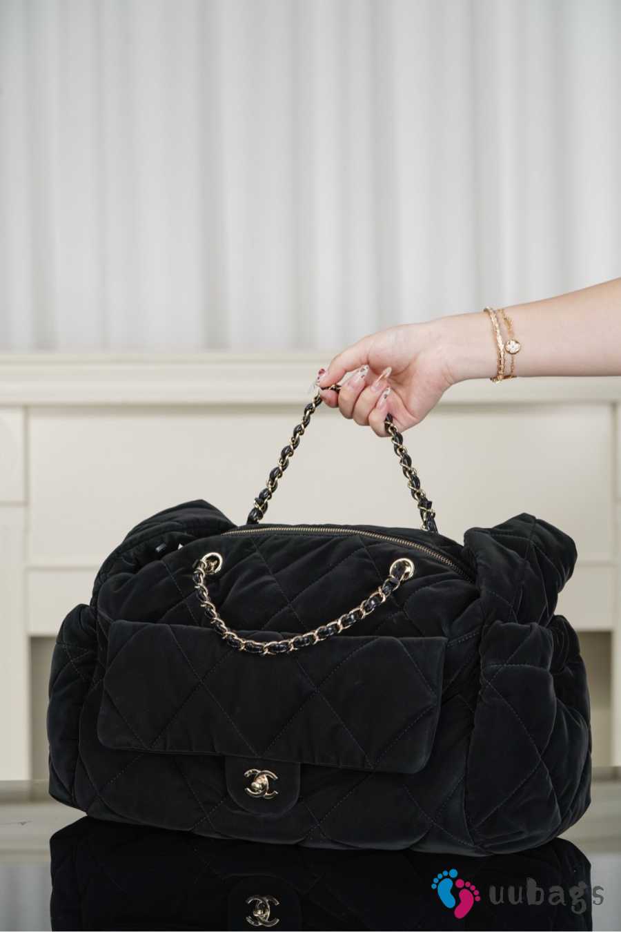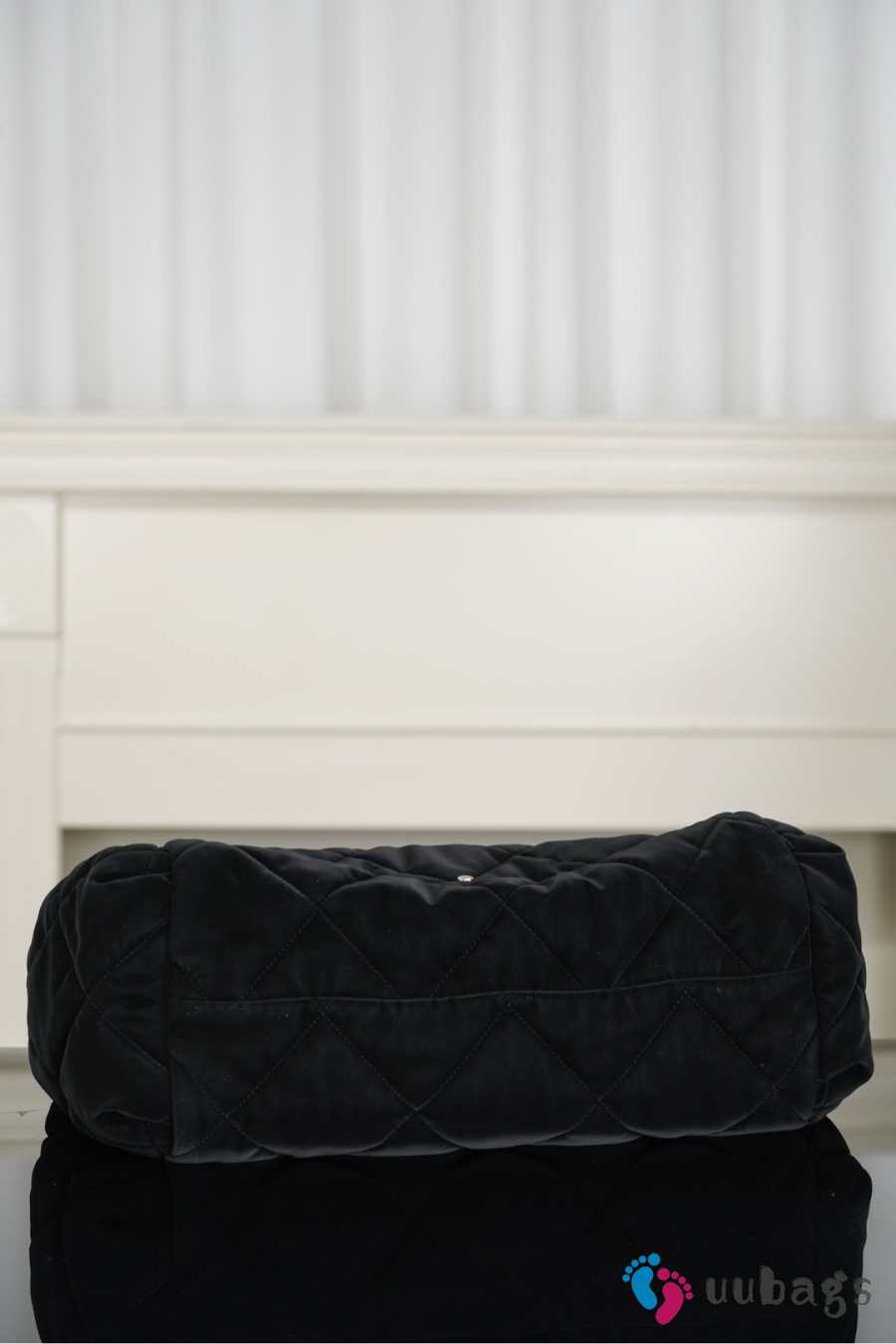 Uubags Chanel Maxi Bowling Bag Velvet Effect Nylon & Gold Metallic In Black 22x44x18cm
