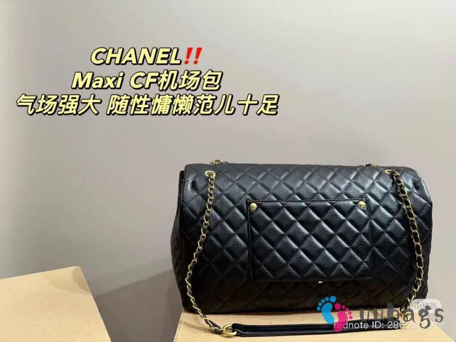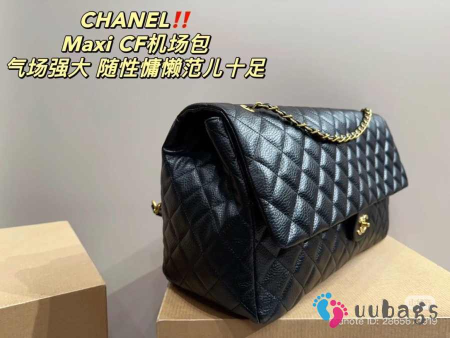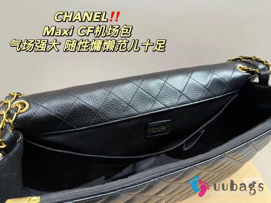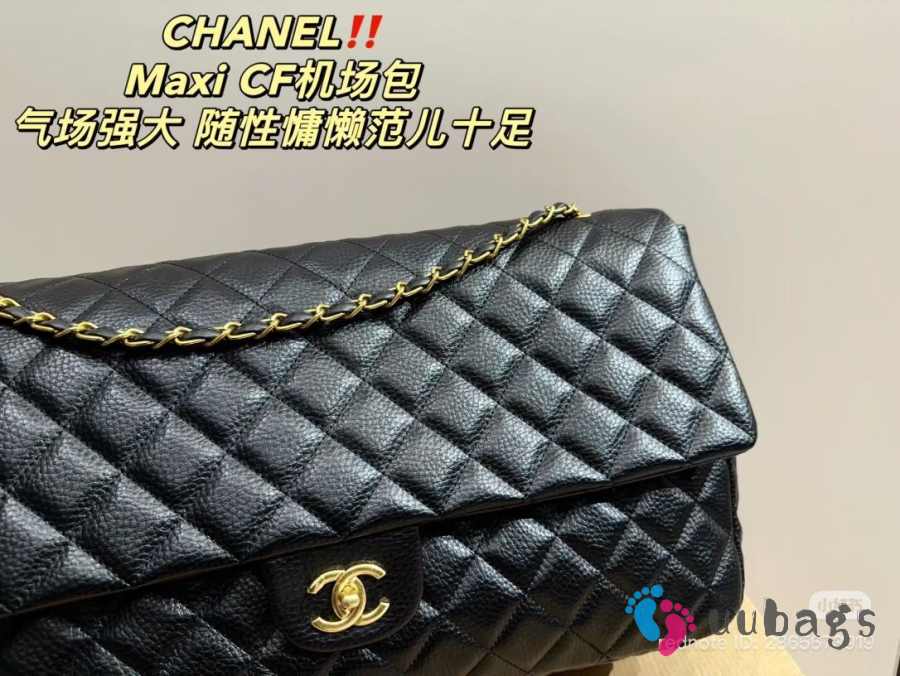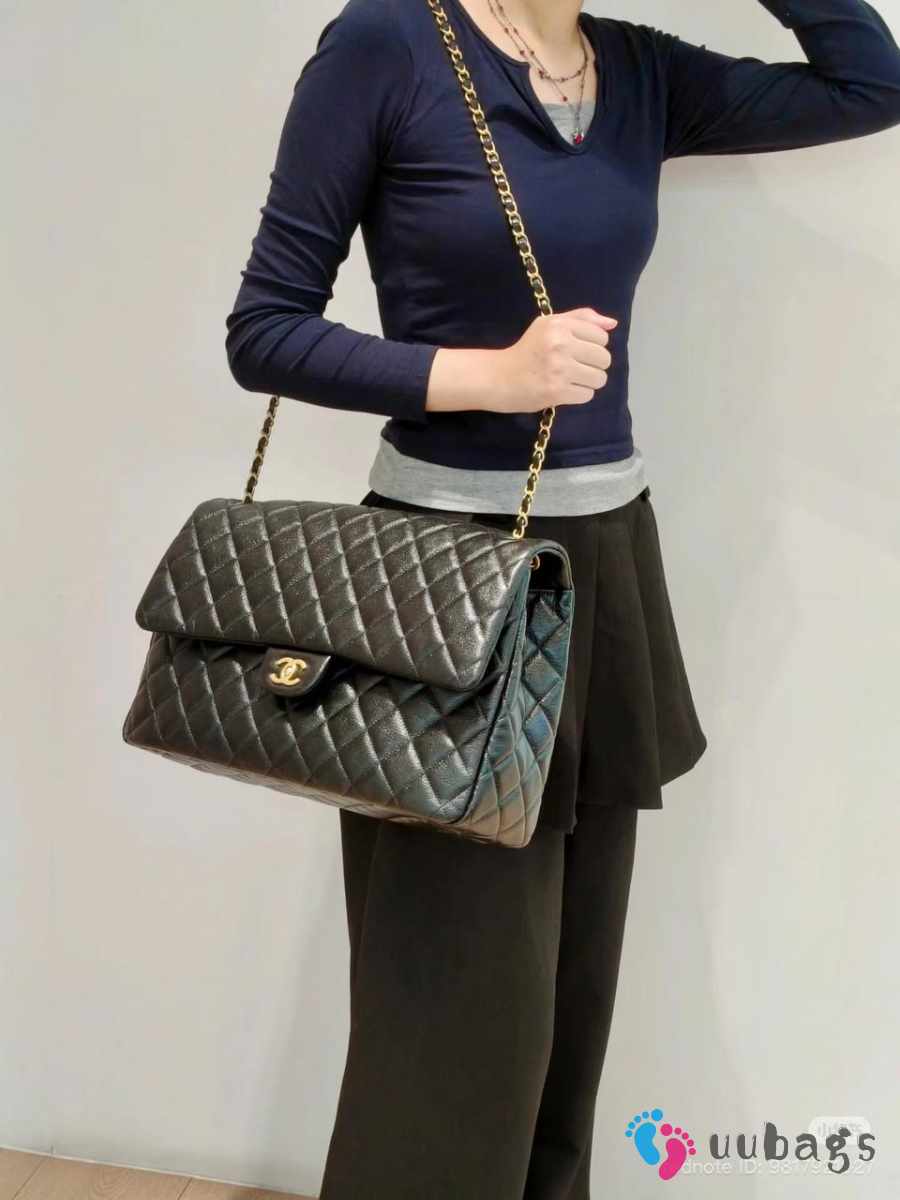 Uubags Chanel maxi classic flap bag in black with gold hardware 38cm