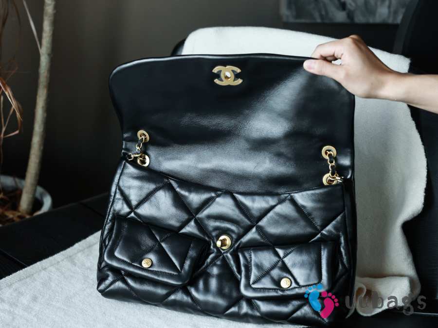 Uubags Chanel Maxi Flapbag In Black Lambskin Leather 27x45x10cm
