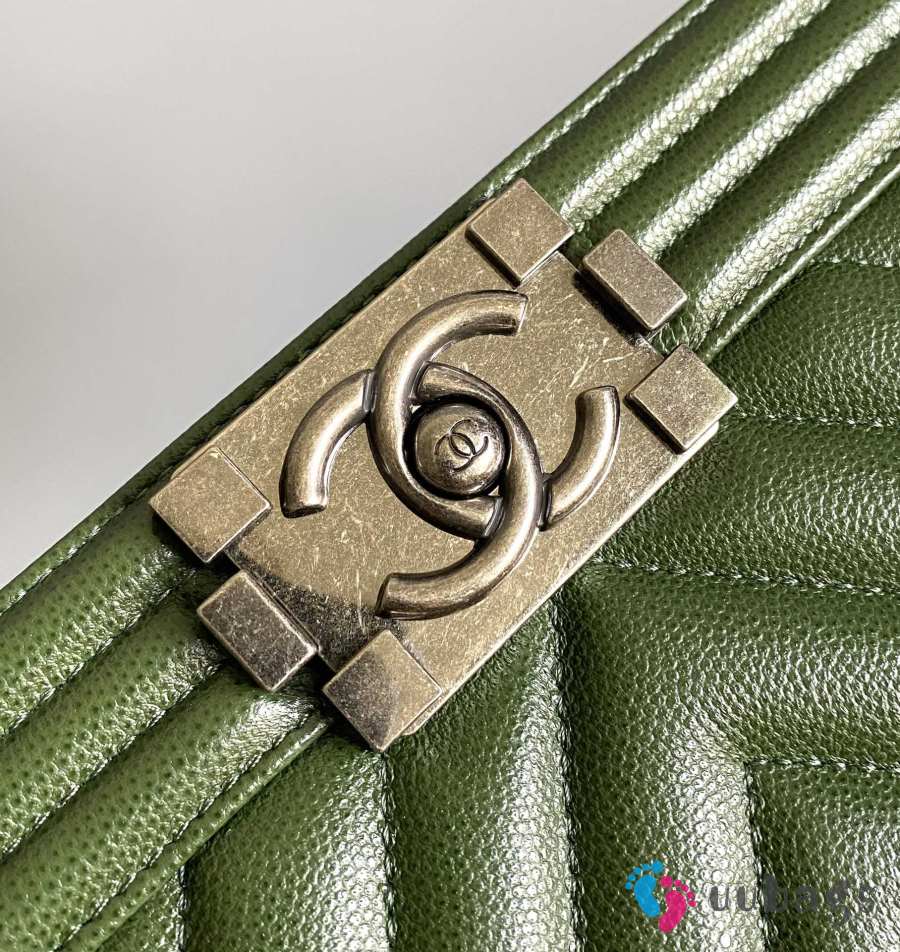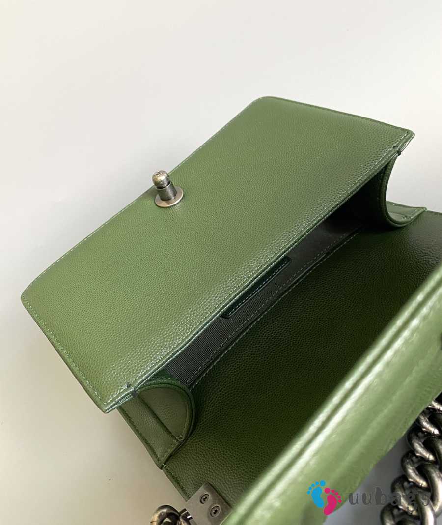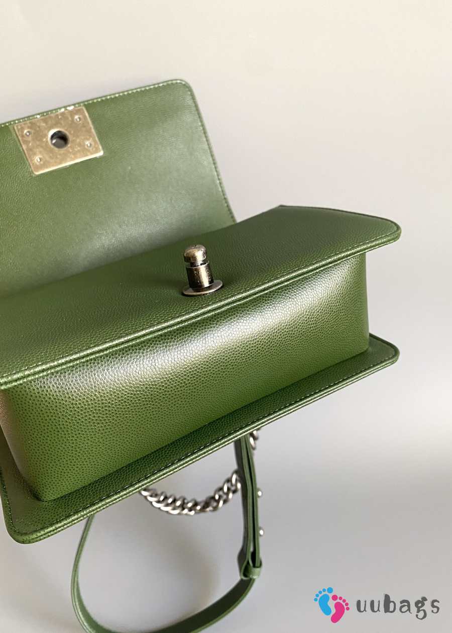 Uubags Chanel Medium Le Boy Green Flap Bag Quilted Leather With Silver Hardware 20.5x12x8.5cm