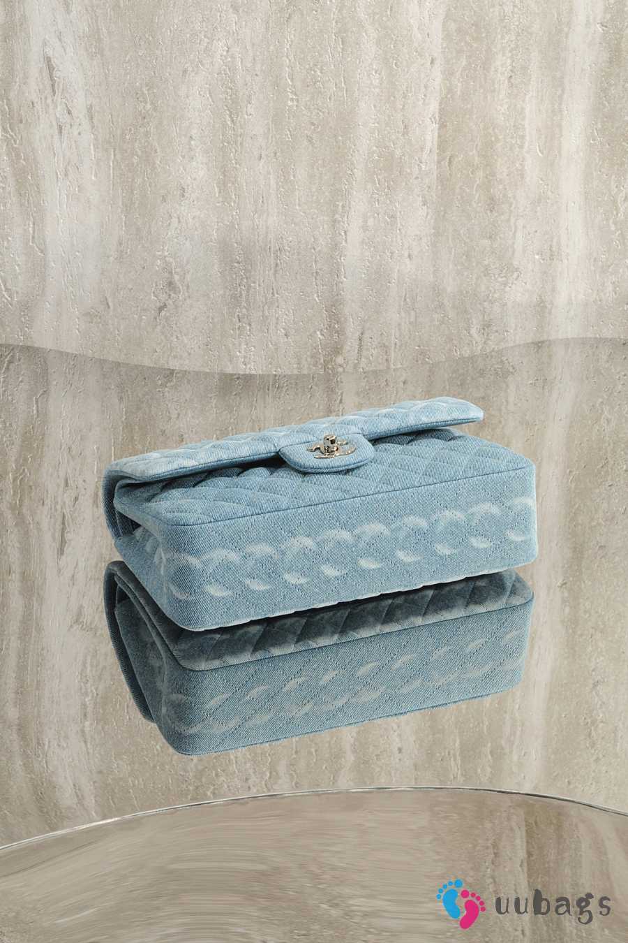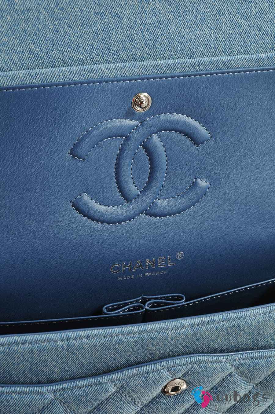 Uubags Chanel Medium Classic Flap Blue Washed Denim With Silver Hardware 25cm