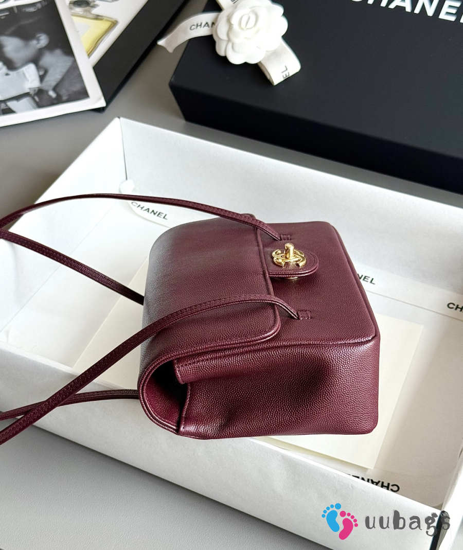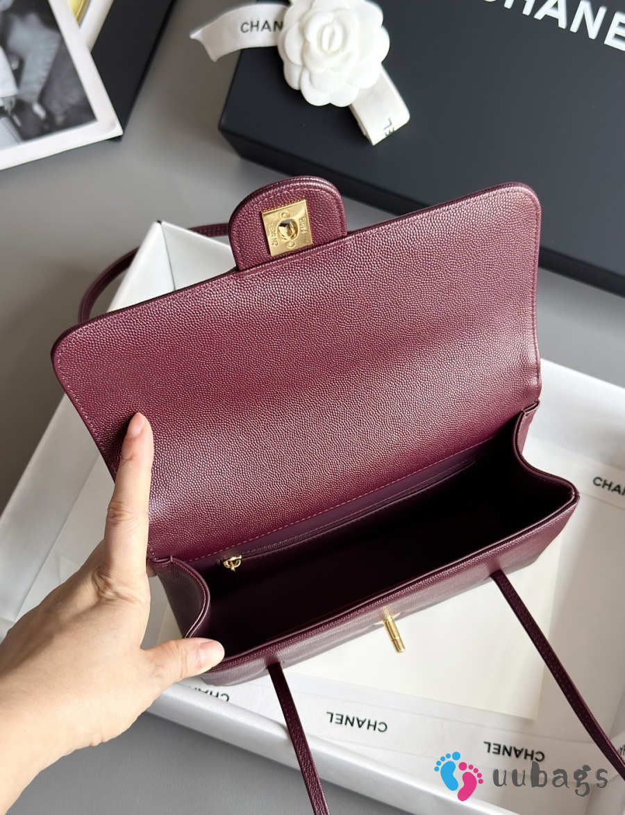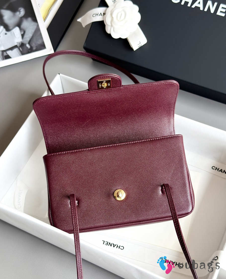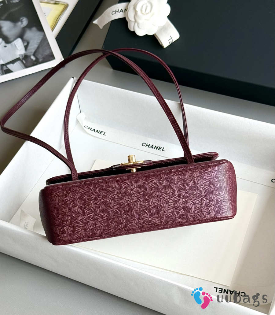Uubags Chanel medium clutch with leather strap in burgundy 15x22x7cm
