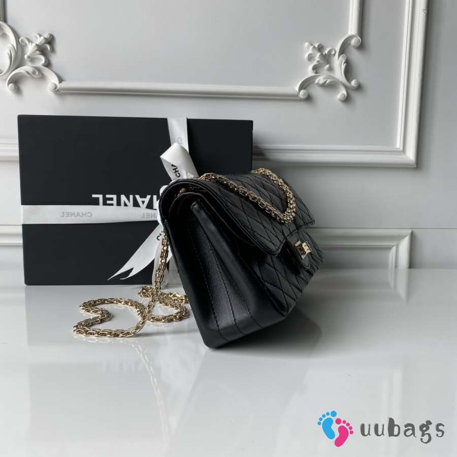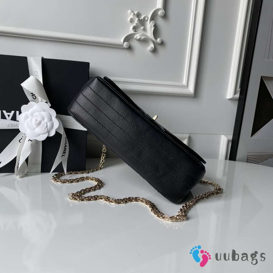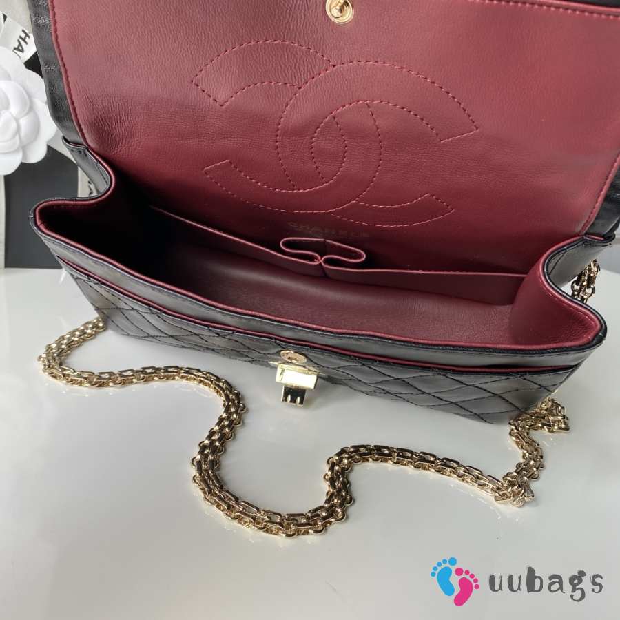 Uubags Chanel medium handbag 2.55 calfskin with wrinkled effect & gold-plated metal in black 24x16x7.5cm